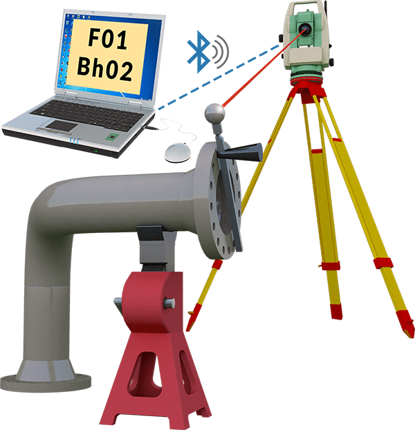 Ein großer Teil der „as-built-Spool-Vermessungen“ wird aus Punktwolken interpretiert. Für einige Anwendungen sind jedoch höhere Genauigkeiten erforderlich, für die wir spezielle Messdienstleistungen mit Totalstation anbieten. Die Totalstation wird von einer Software ferngesteuert und verfügt über ATR-Sensoren sowie dedizierte Geräte, die das Prisma halten. Dank dieser Einrichtung kann ein Vermessungstechniker die Arbeit allein durchführen.