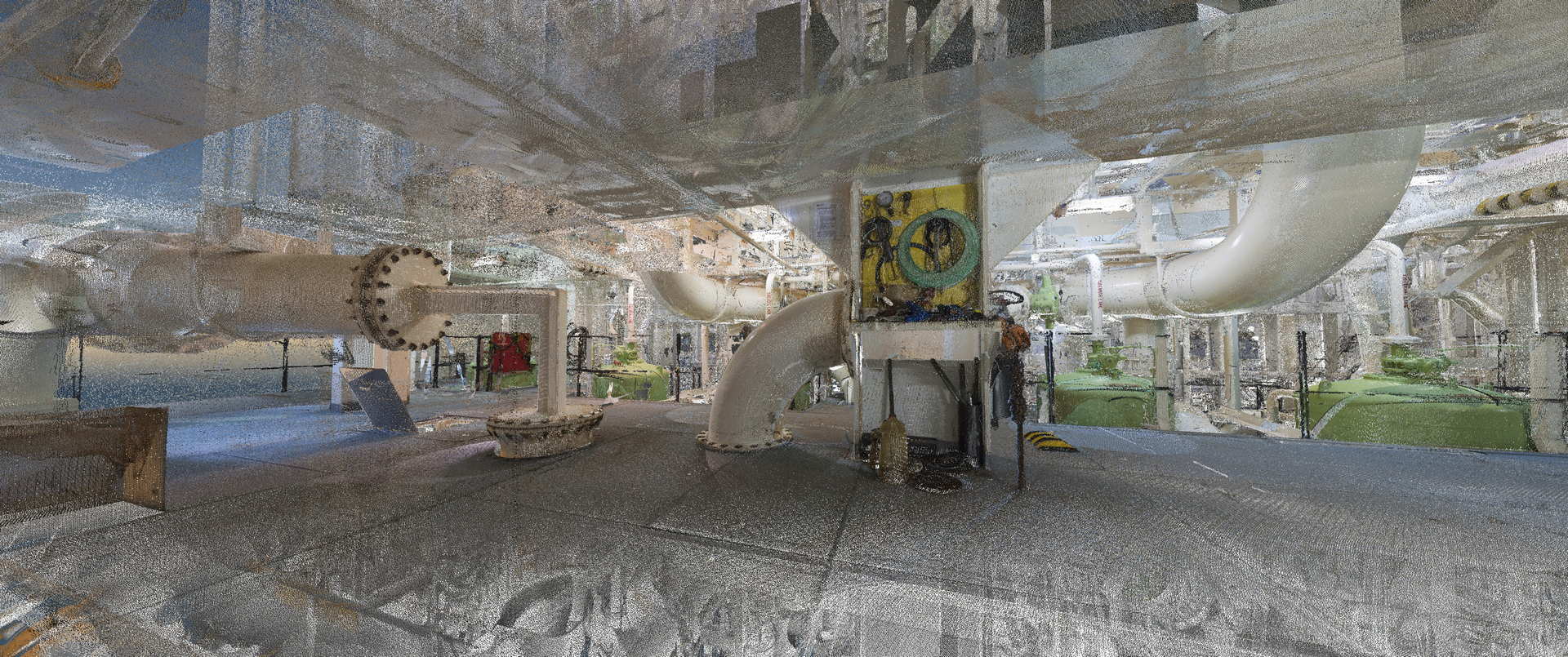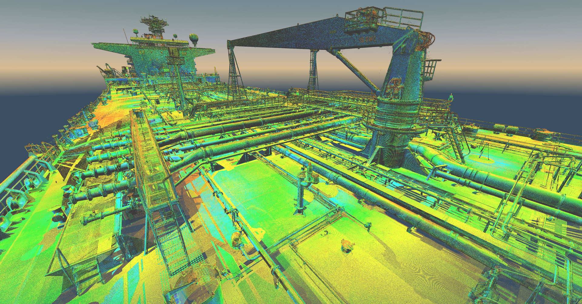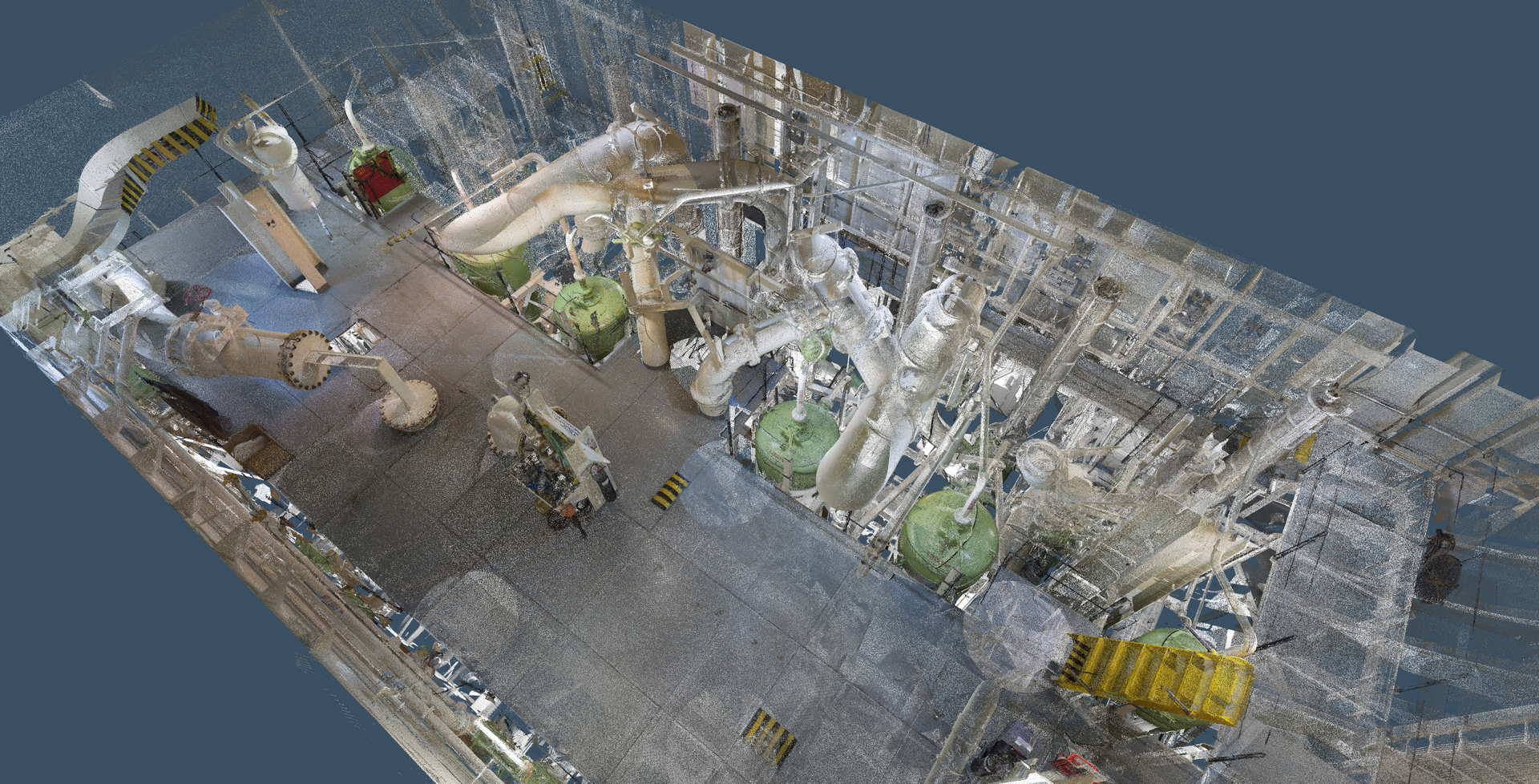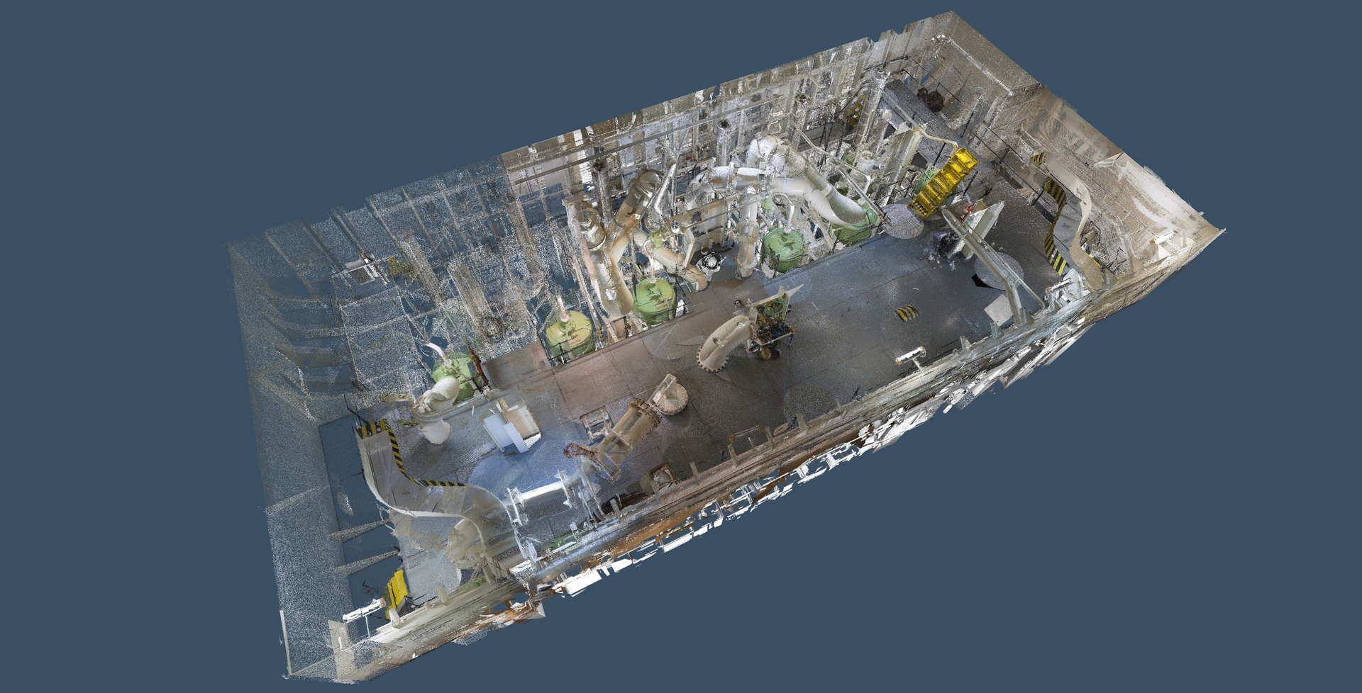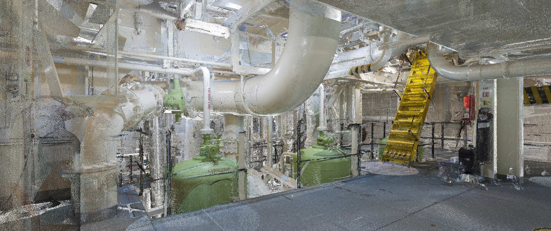 Dieses ungewöhnliche Projekt betraf einen stillgelegten Öltanker auf der Insel Borneo in Malaysia. Letztendlich sollte der Tanker als schweres Hebegerät wieder aufgebaut werden, im Wesentlichen als Schlepper für andere Schiffe oder sogar Ölplattformen. Die Pläne für den Umbau konzentrierten sich auf die Modernisierung des Ballastpumpensystems, um die Effizienz zu maximieren. Der Umfang des Laserscannings umfasste den Pumpenraum, den Maschinenraum und das Deck. Etwa 400 einzelne Scan-Positionen wurden aufgenommen.