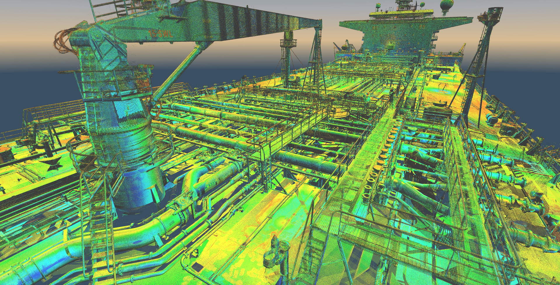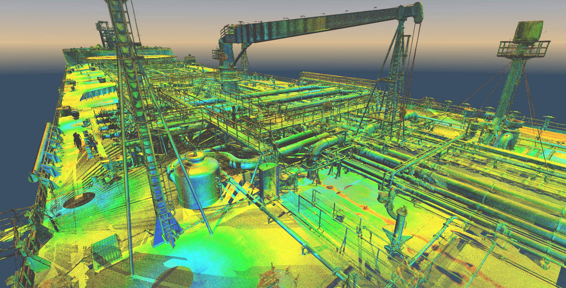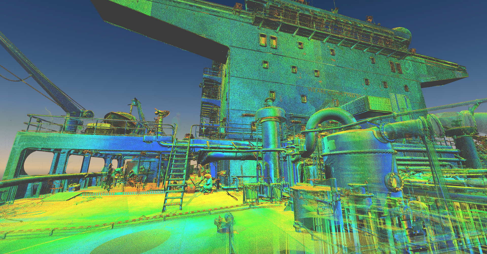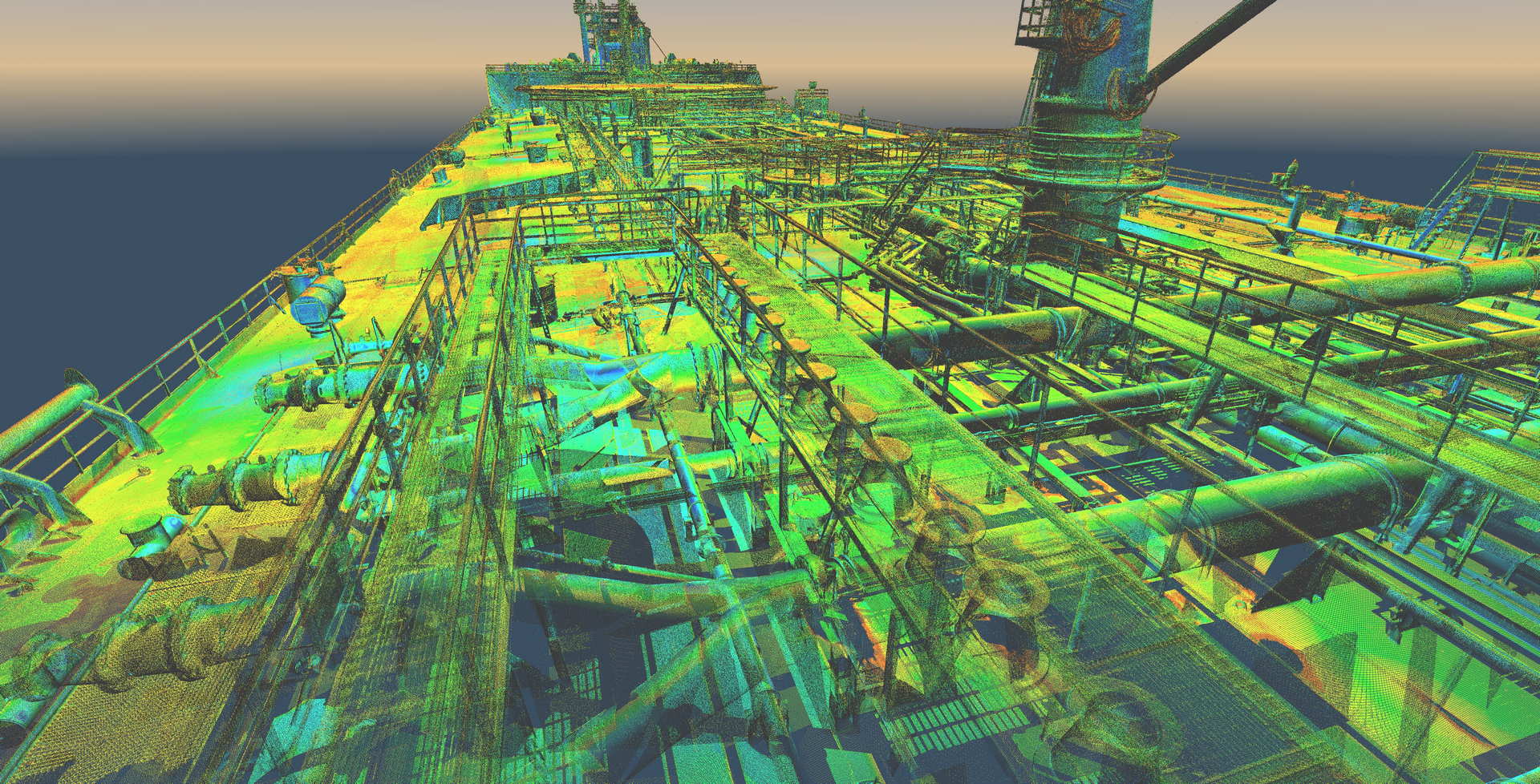 Dieses ungewöhnliche Projekt betraf einen stillgelegten Öltanker auf der Insel Borneo in Malaysia. Letztendlich sollte der Tanker als schweres Hebegerät wieder aufgebaut werden, im Wesentlichen als Schlepper für andere Schiffe oder sogar Ölplattformen. Die Pläne für den Umbau konzentrierten sich auf die Modernisierung des Ballastpumpensystems, um die Effizienz zu maximieren. Der Umfang des Laserscannings umfasste den Pumpenraum, den Maschinenraum und das Deck. Etwa 400 einzelne Scan-Positionen wurden aufgenommen.