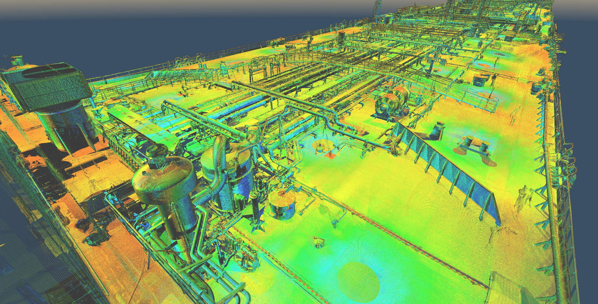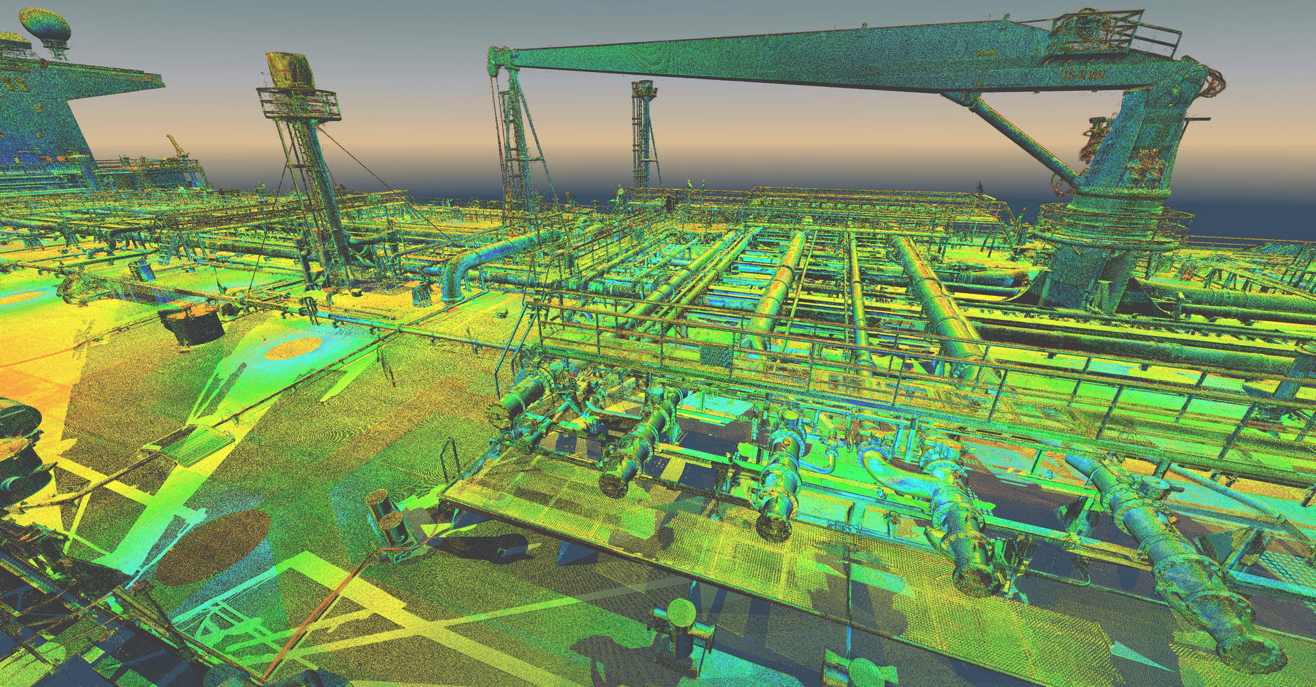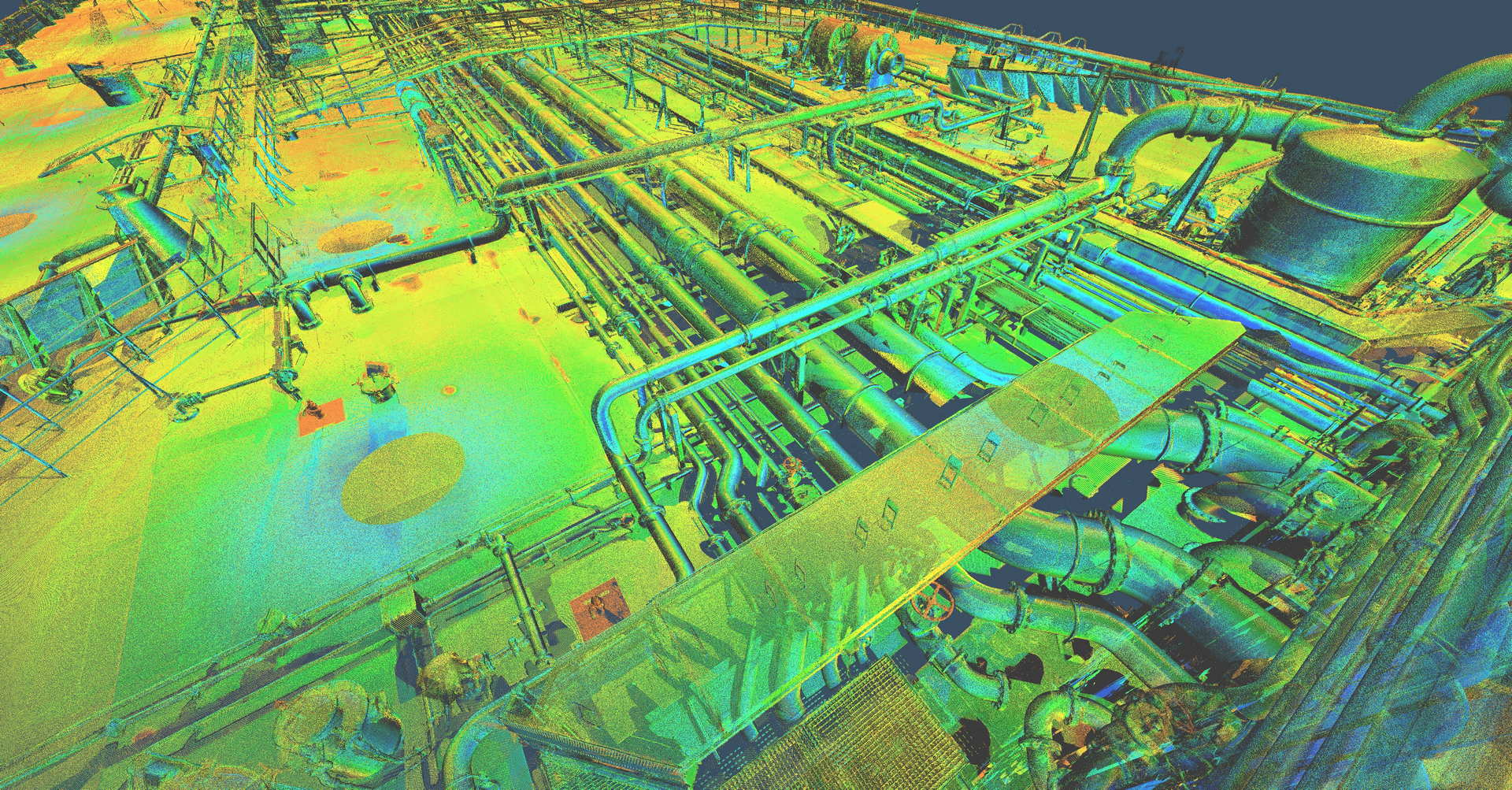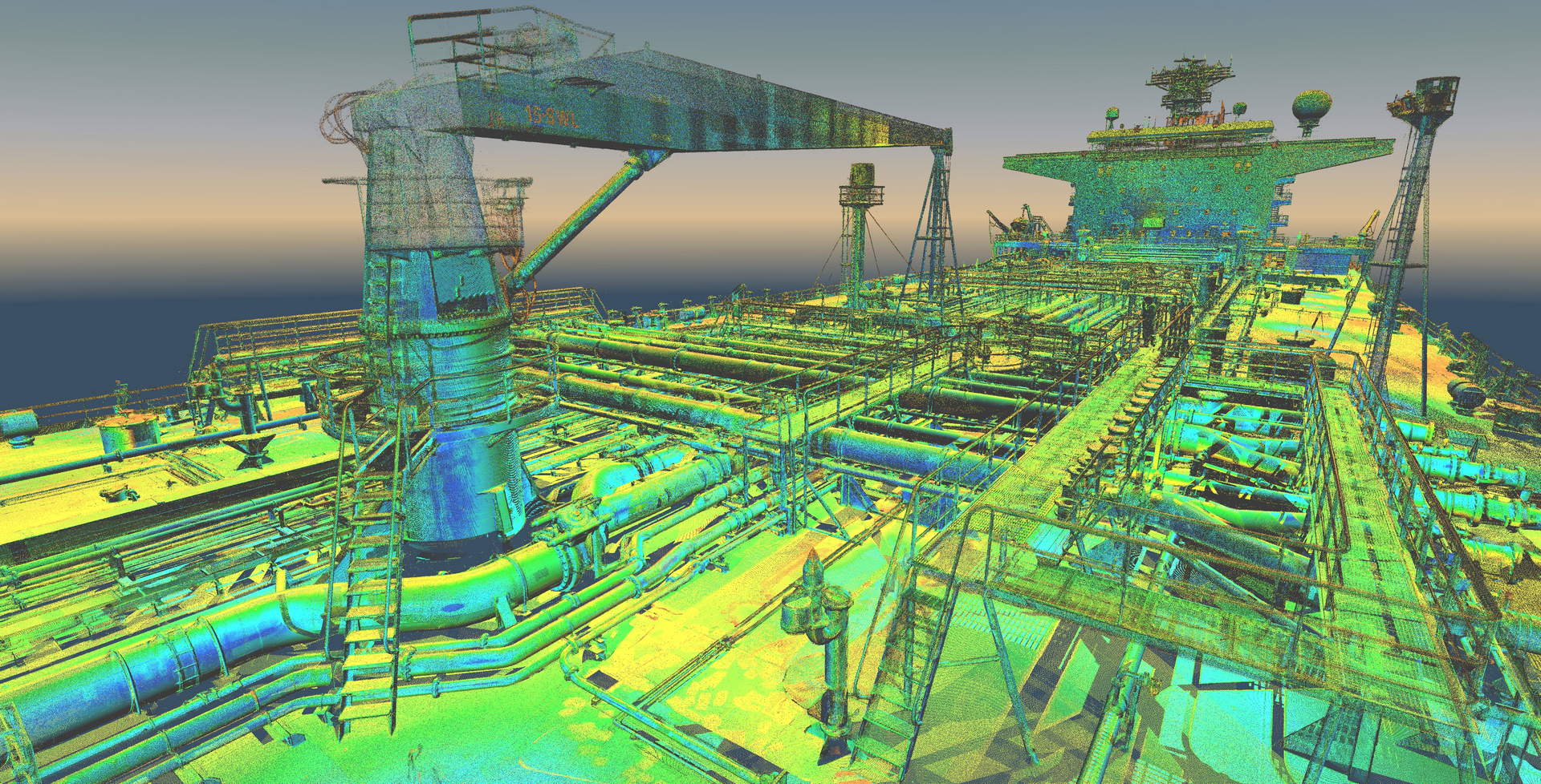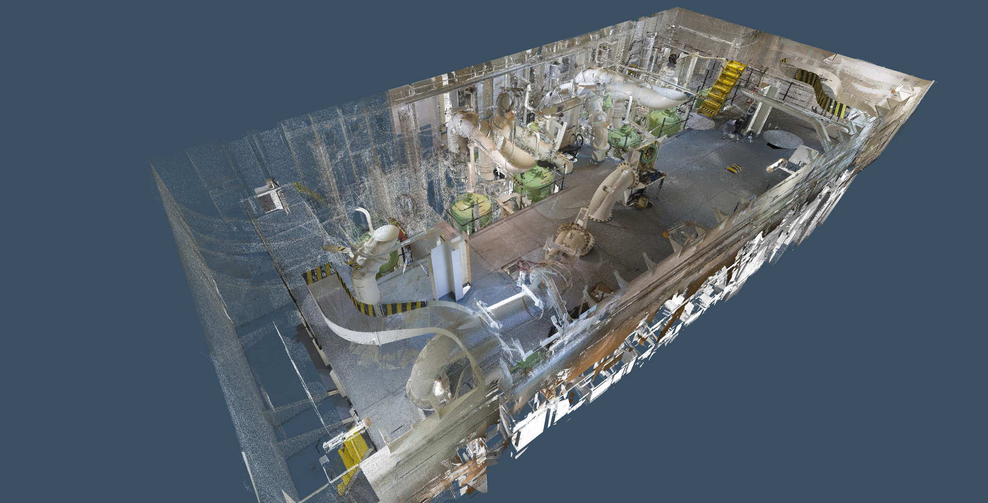 Dieses ungewöhnliche Projekt betraf einen stillgelegten Öltanker auf der Insel Borneo in Malaysia. Letztendlich sollte der Tanker als schweres Hebegerät wieder aufgebaut werden, im Wesentlichen als Schlepper für andere Schiffe oder sogar Ölplattformen. Die Pläne für den Umbau konzentrierten sich auf die Modernisierung des Ballastpumpensystems, um die Effizienz zu maximieren. Der Umfang des Laserscannings umfasste den Pumpenraum, den Maschinenraum und das Deck. Etwa 400 einzelne Scan-Positionen wurden aufgenommen.