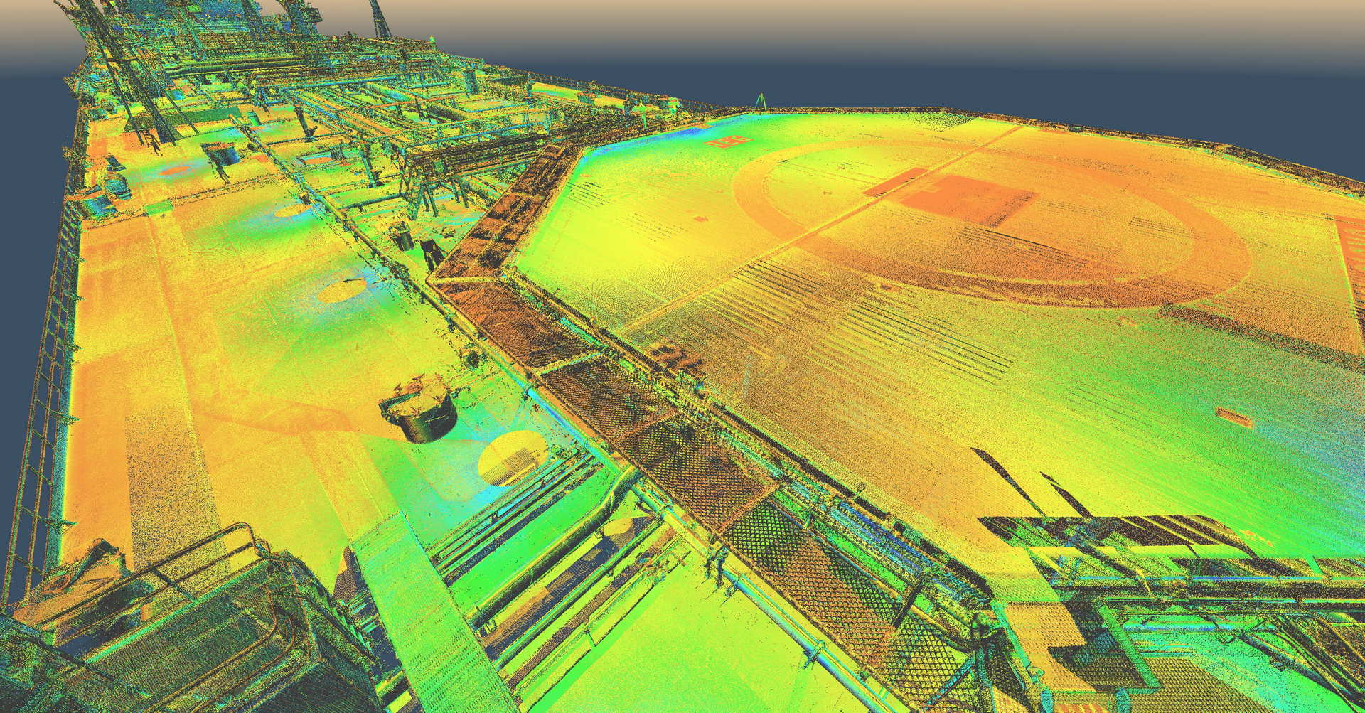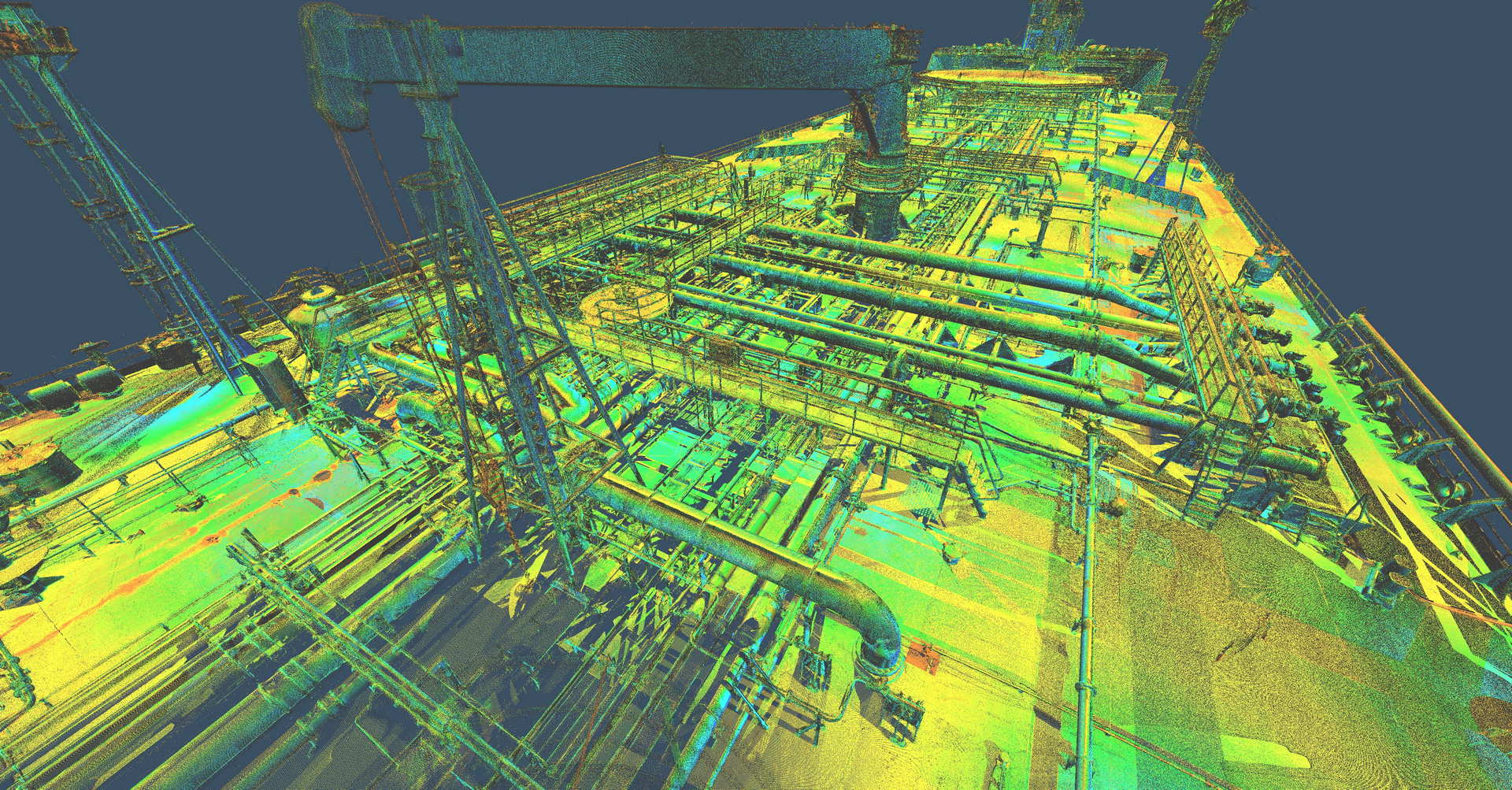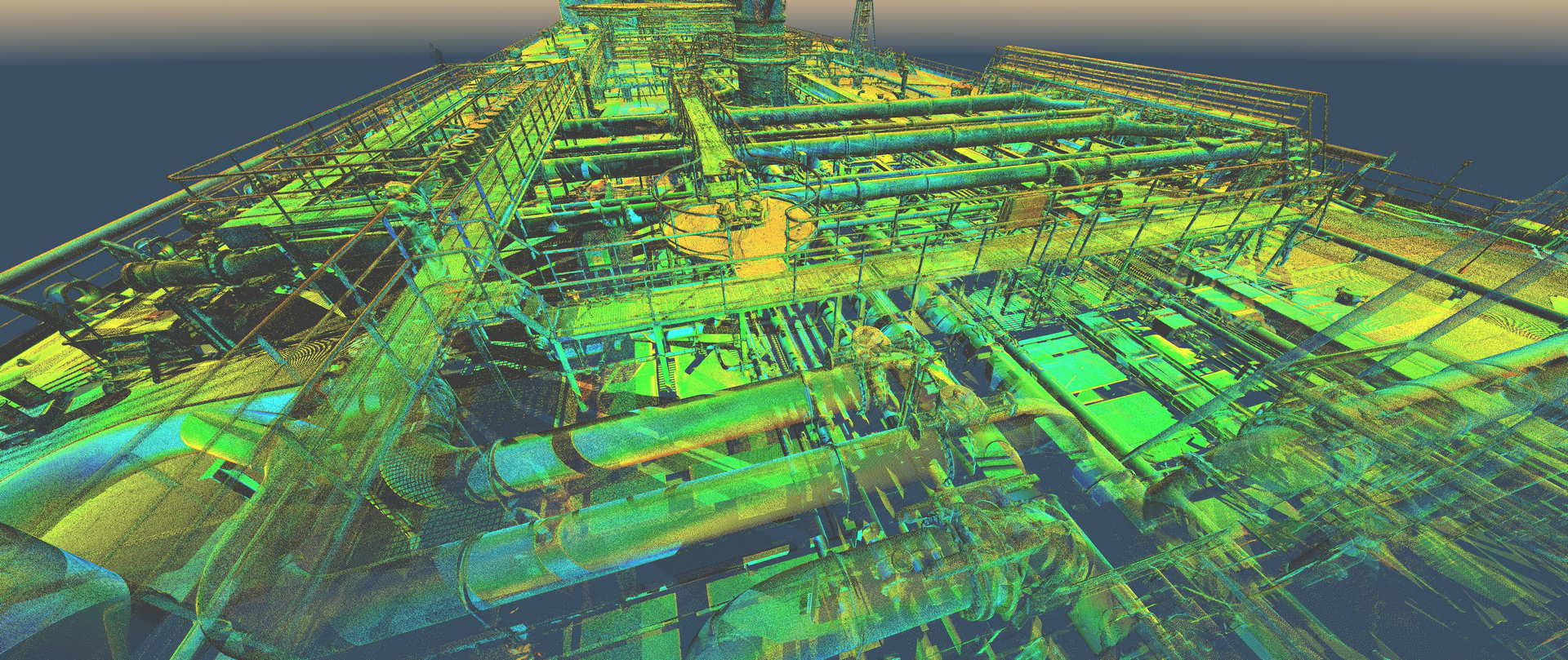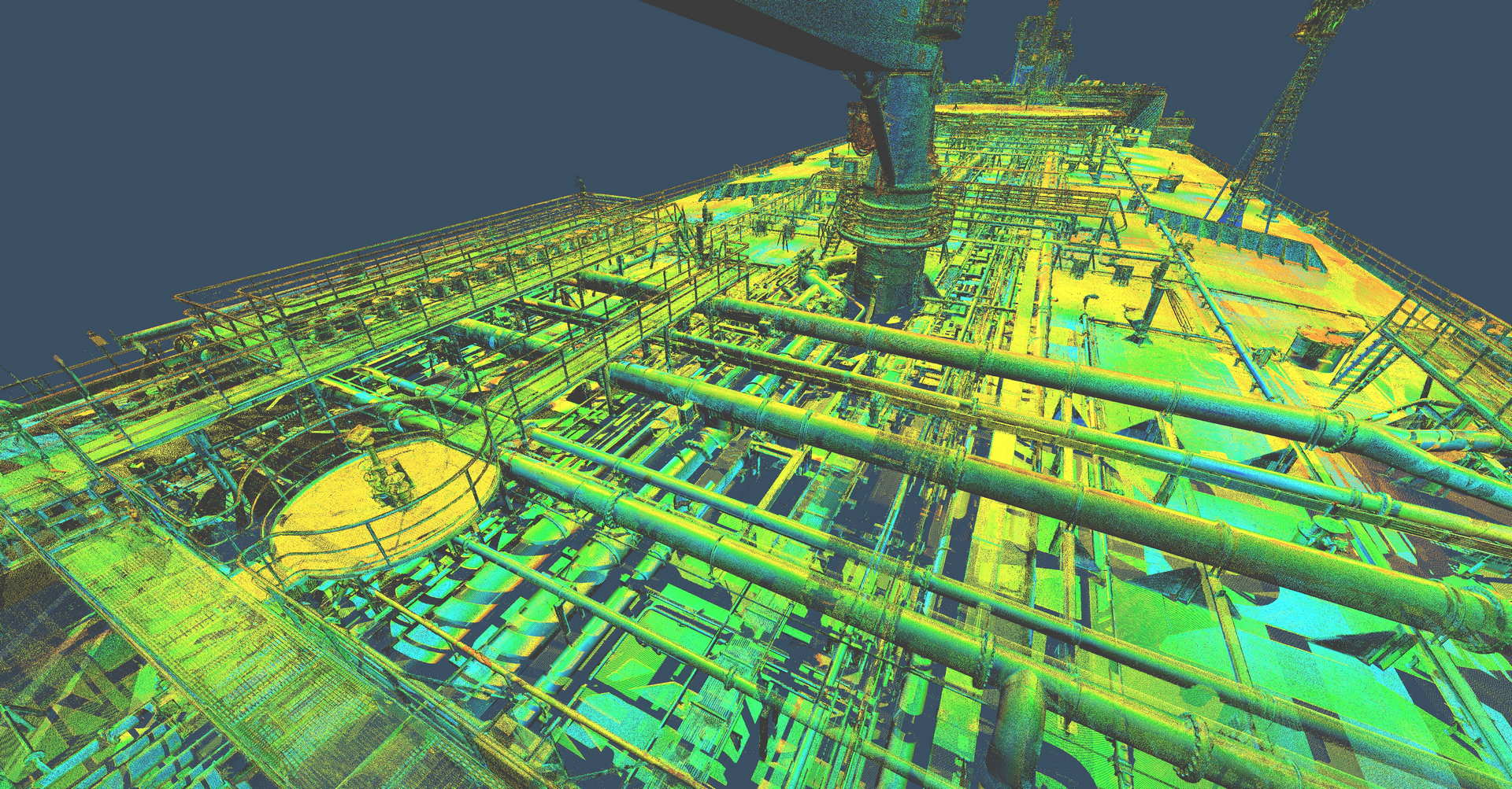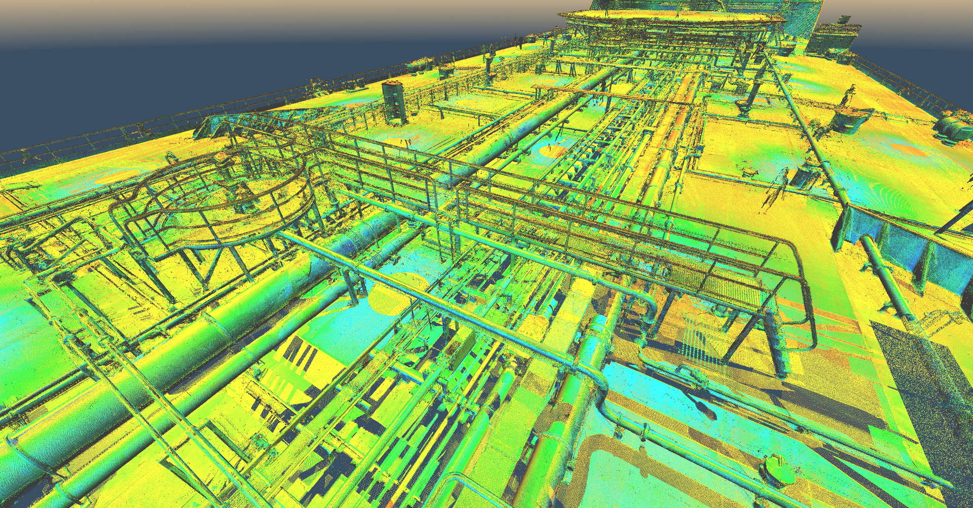 Dieses ungewöhnliche Projekt betraf einen stillgelegten Öltanker auf der Insel Borneo in Malaysia. Letztendlich sollte der Tanker als schweres Hebegerät wieder aufgebaut werden, im Wesentlichen als Schlepper für andere Schiffe oder sogar Ölplattformen. Die Pläne für den Umbau konzentrierten sich auf die Modernisierung des Ballastpumpensystems, um die Effizienz zu maximieren. Der Umfang des Laserscannings umfasste den Pumpenraum, den Maschinenraum und das Deck. Etwa 400 einzelne Scan-Positionen wurden aufgenommen.