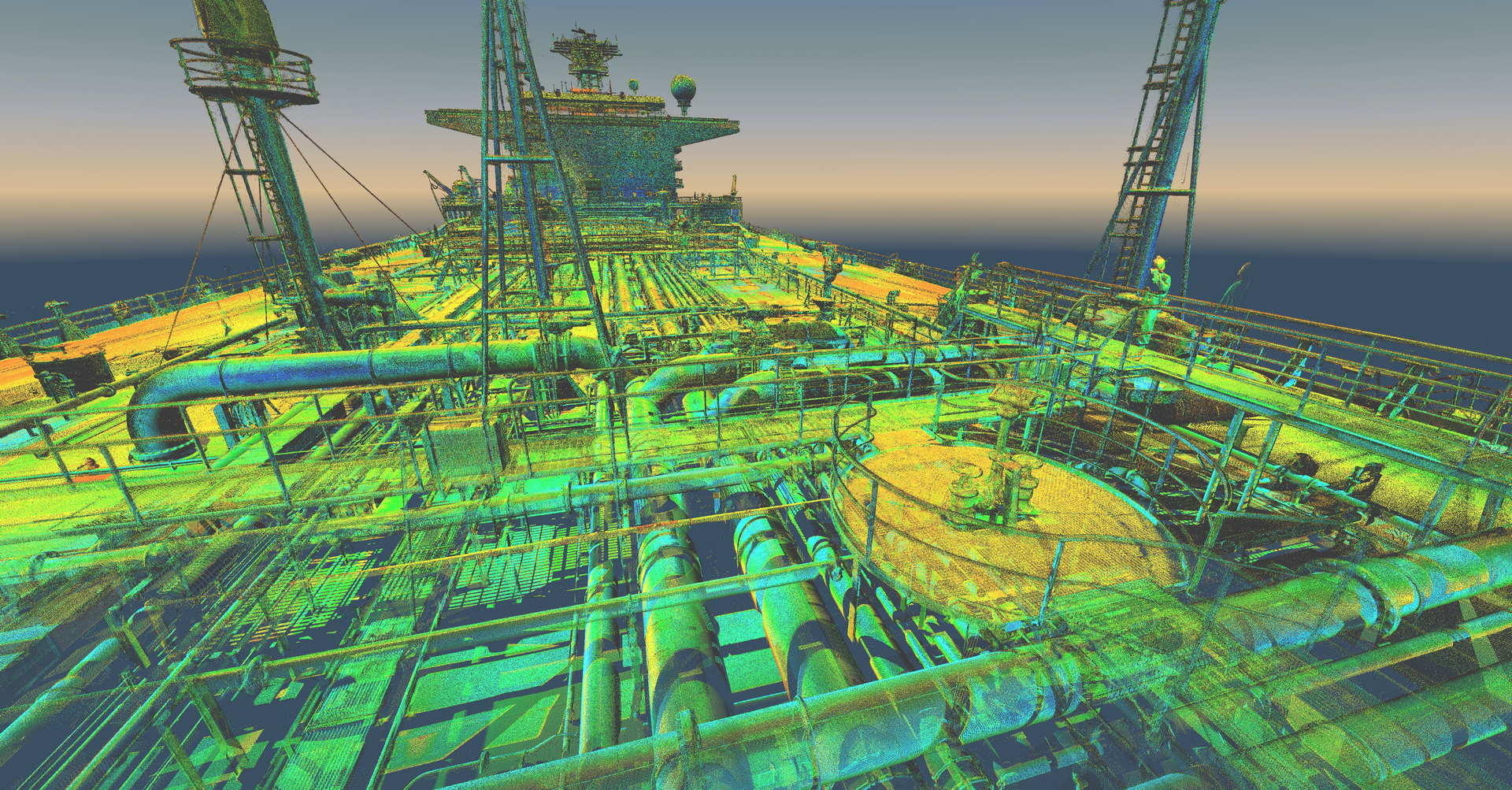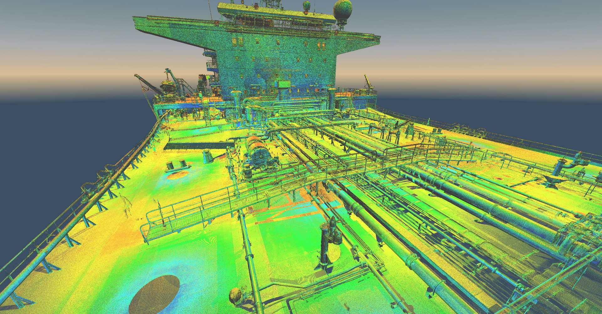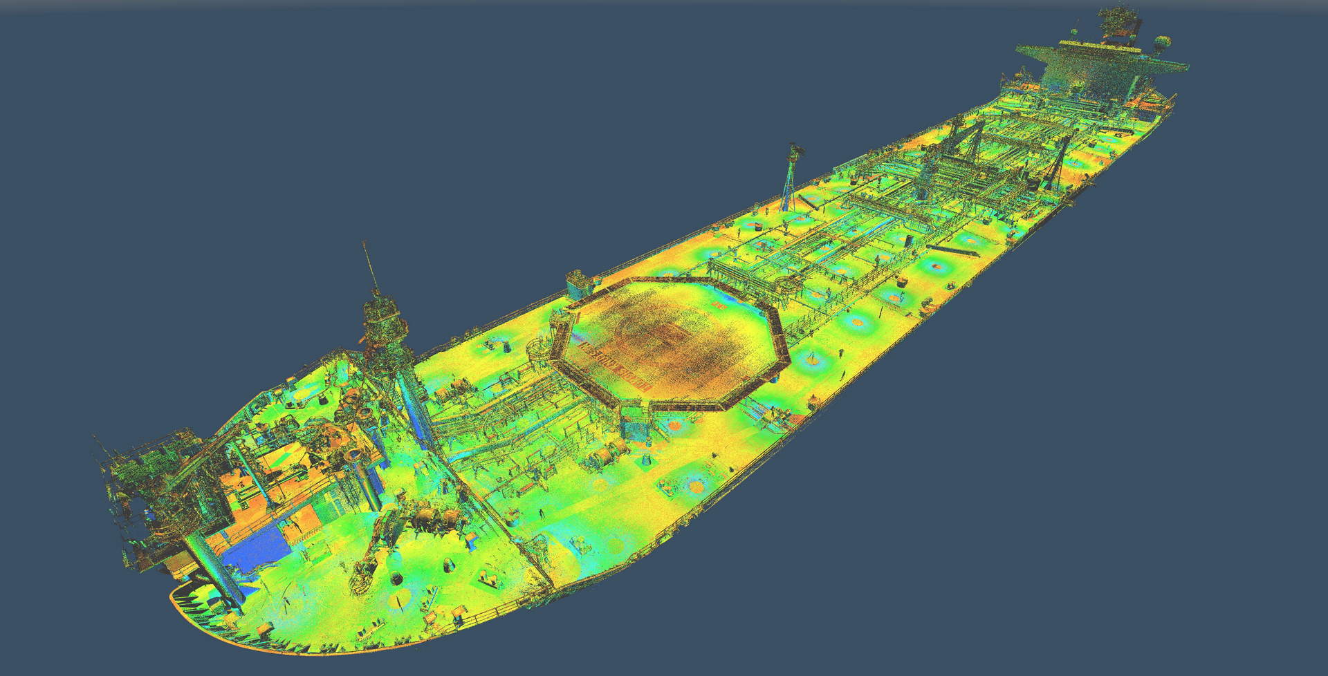 Laserscanning und Punktwolkenregistrierung des Öltankers