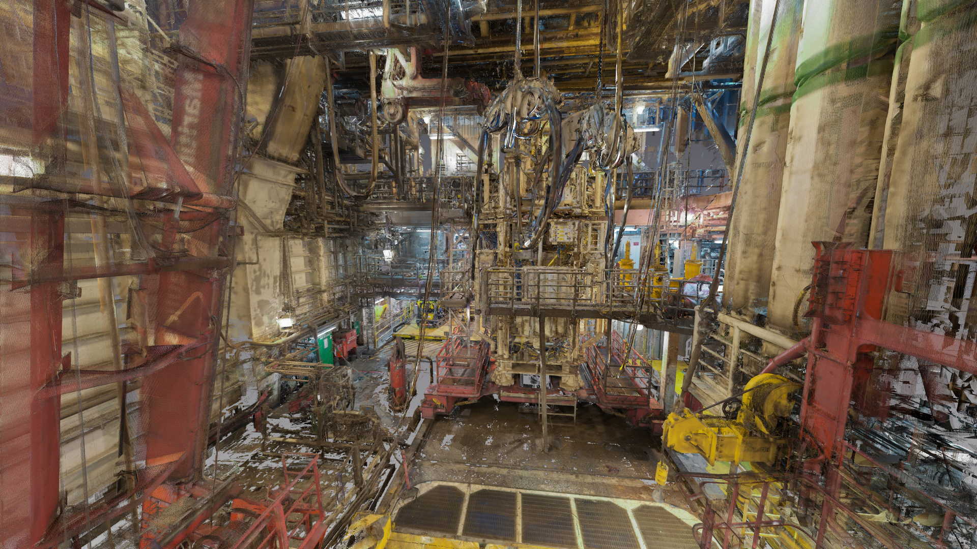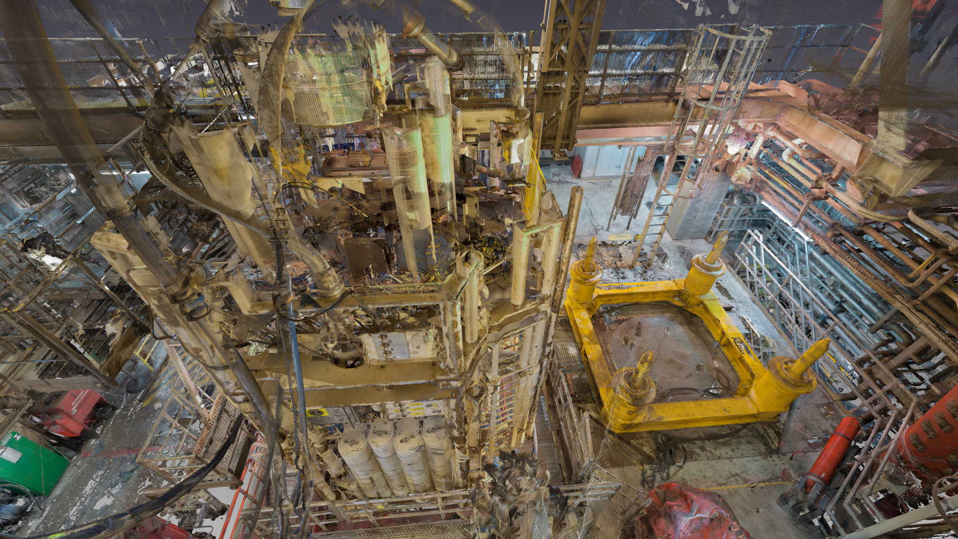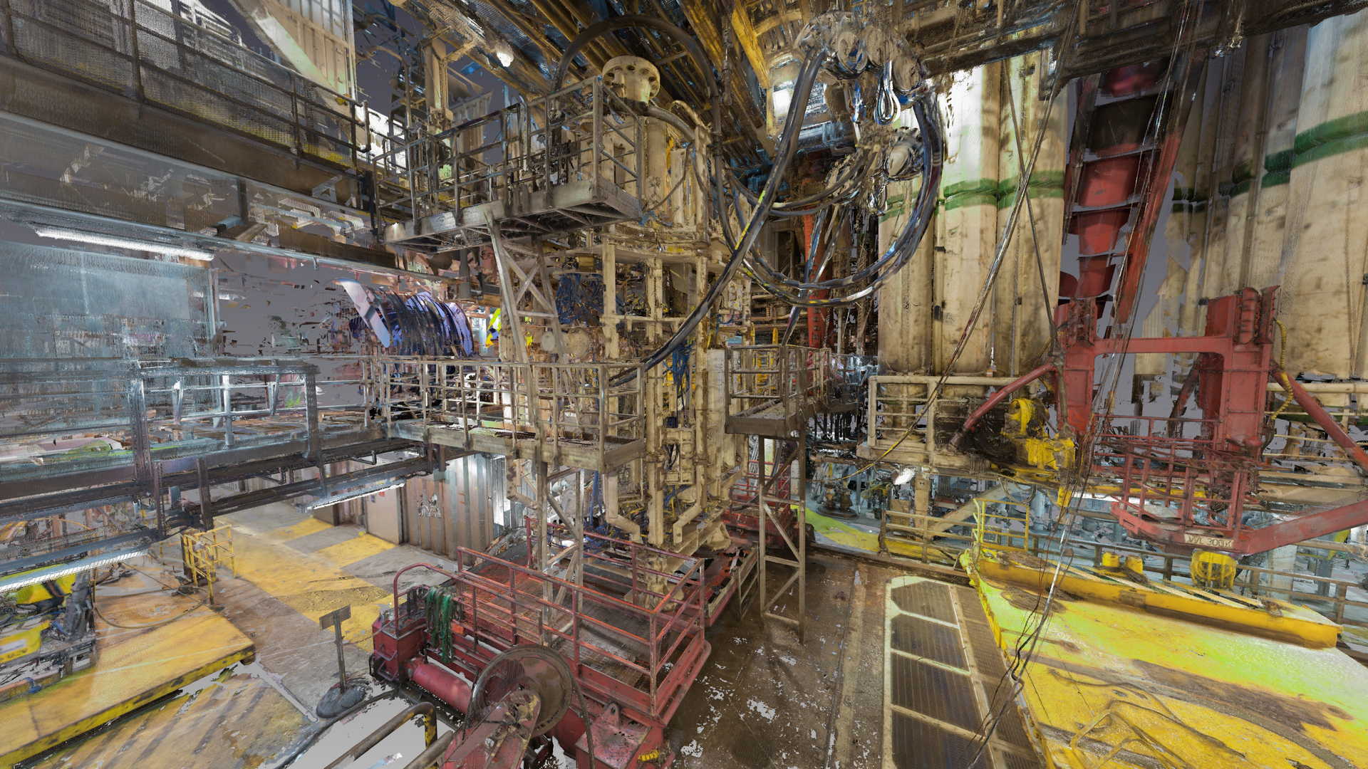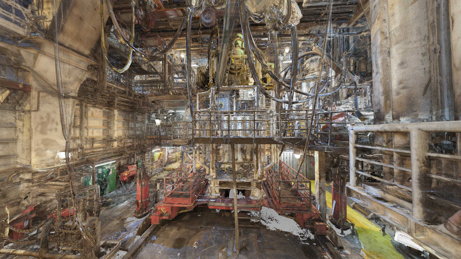 Wir haben eine 3D-Laserscan-Vermessung auf einer Plattform in der Nordsee durchgeführt. Das Messobjekt war der Blowout Preventer (BOP). Der Kunde hatte geplant, einige Installationen zu ersetzen, daher bestellte er eine 3D-Laserscan- und Modellierungsbearbeitung auf der Basis von Punktwolken auf möglichst genaue und detaillierte Weise. Die Datei wurde im AVEVA PDMS-Format geliefert – als Geometrie ohne Attribute und im DGN-Format.