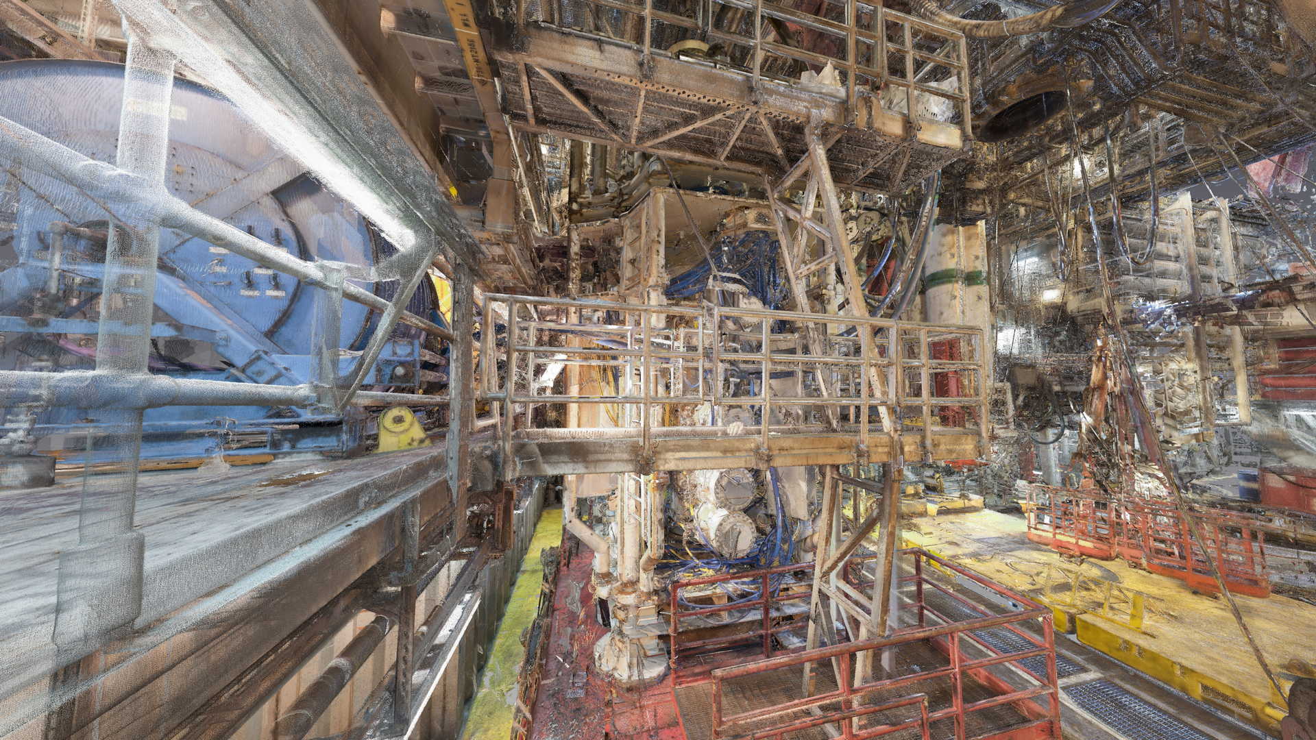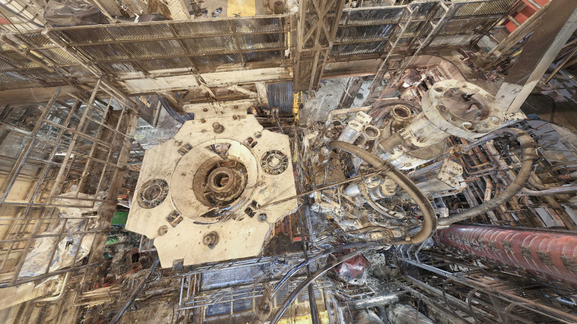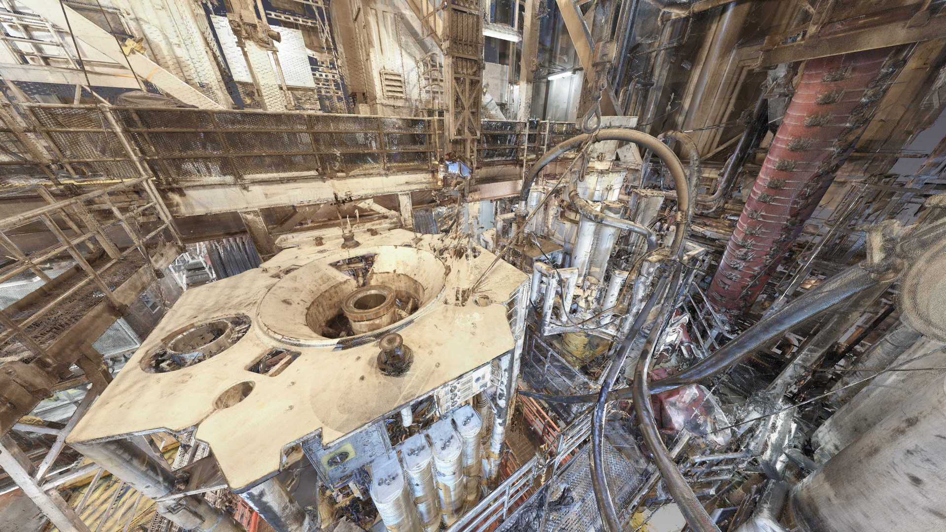 Wir haben eine 3D-Laserscan-Vermessung auf einer Plattform in der Nordsee durchgeführt. Das Messobjekt war der Blowout Preventer (BOP). Der Kunde hatte geplant, einige Installationen zu ersetzen, daher bestellte er eine 3D-Laserscan- und Modellierungsbearbeitung auf der Basis von Punktwolken auf möglichst genaue und detaillierte Weise. Die Datei wurde im AVEVA PDMS-Format geliefert – als Geometrie ohne Attribute und im DGN-Format.
