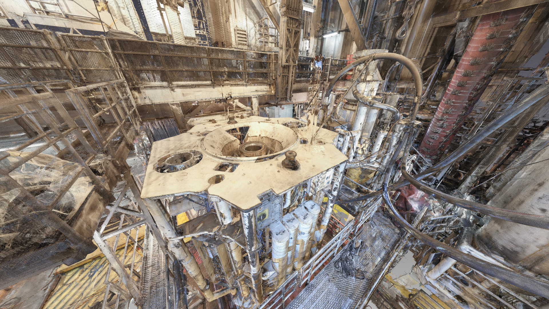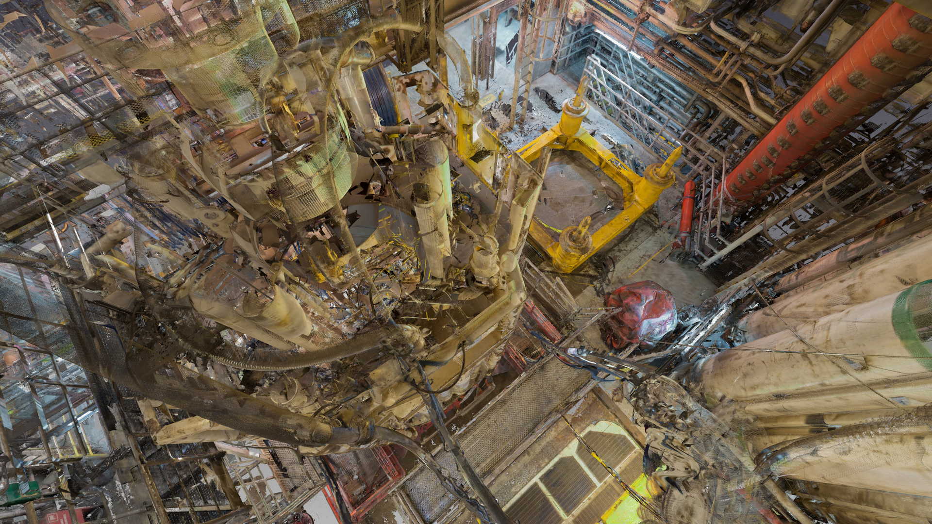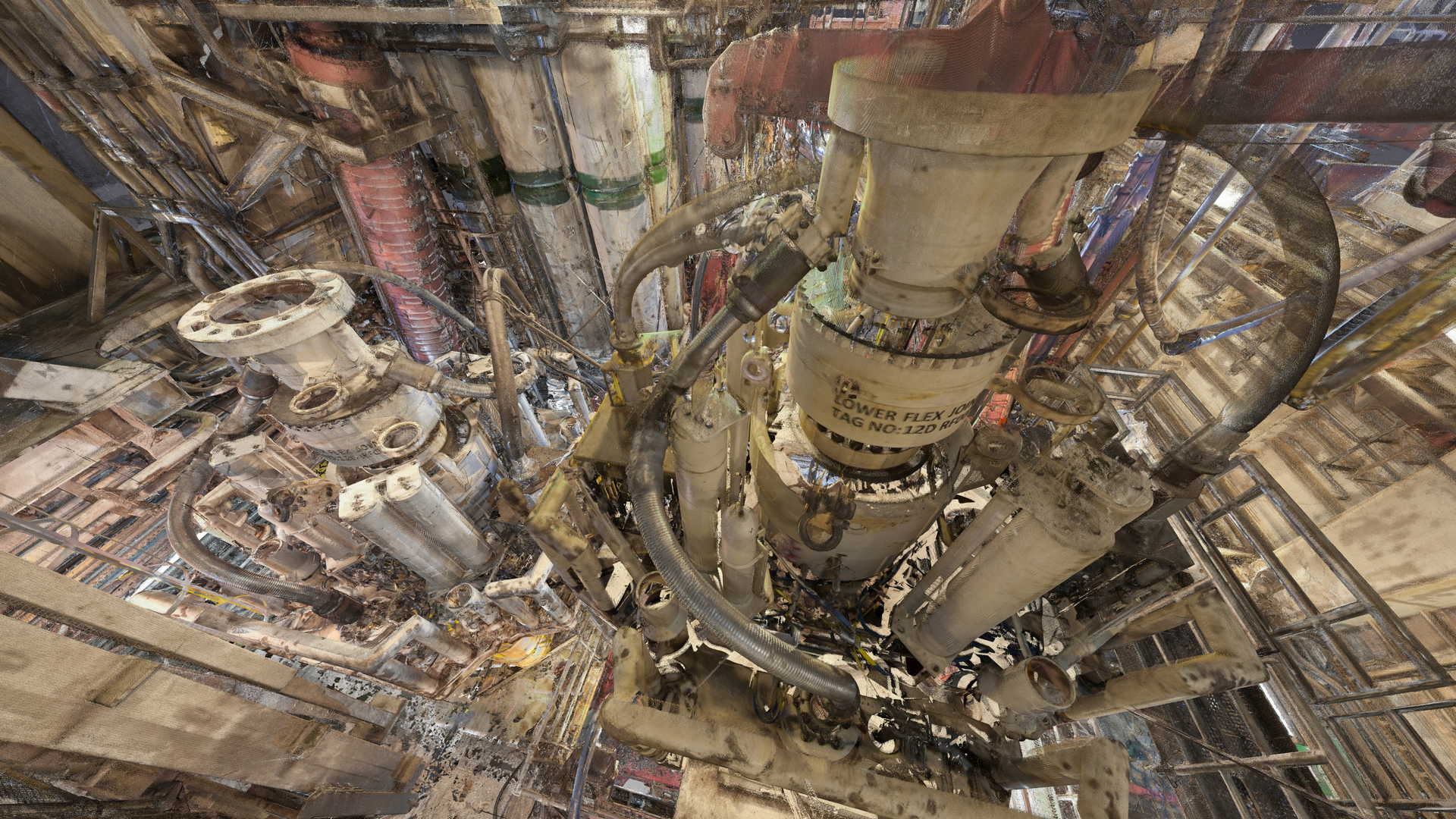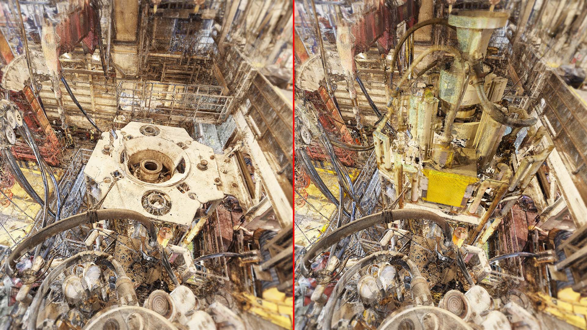 Wir haben eine 3D-Laserscan-Vermessung auf einer Plattform in der Nordsee durchgeführt. Das Messobjekt war der Blowout Preventer (BOP). Der Kunde hatte geplant, einige Installationen zu ersetzen, daher bestellte er eine 3D-Laserscan- und Modellierungsbearbeitung auf der Basis von Punktwolken auf möglichst genaue und detaillierte Weise. Die Datei wurde im AVEVA PDMS-Format geliefert – als Geometrie ohne Attribute und im DGN-Format.