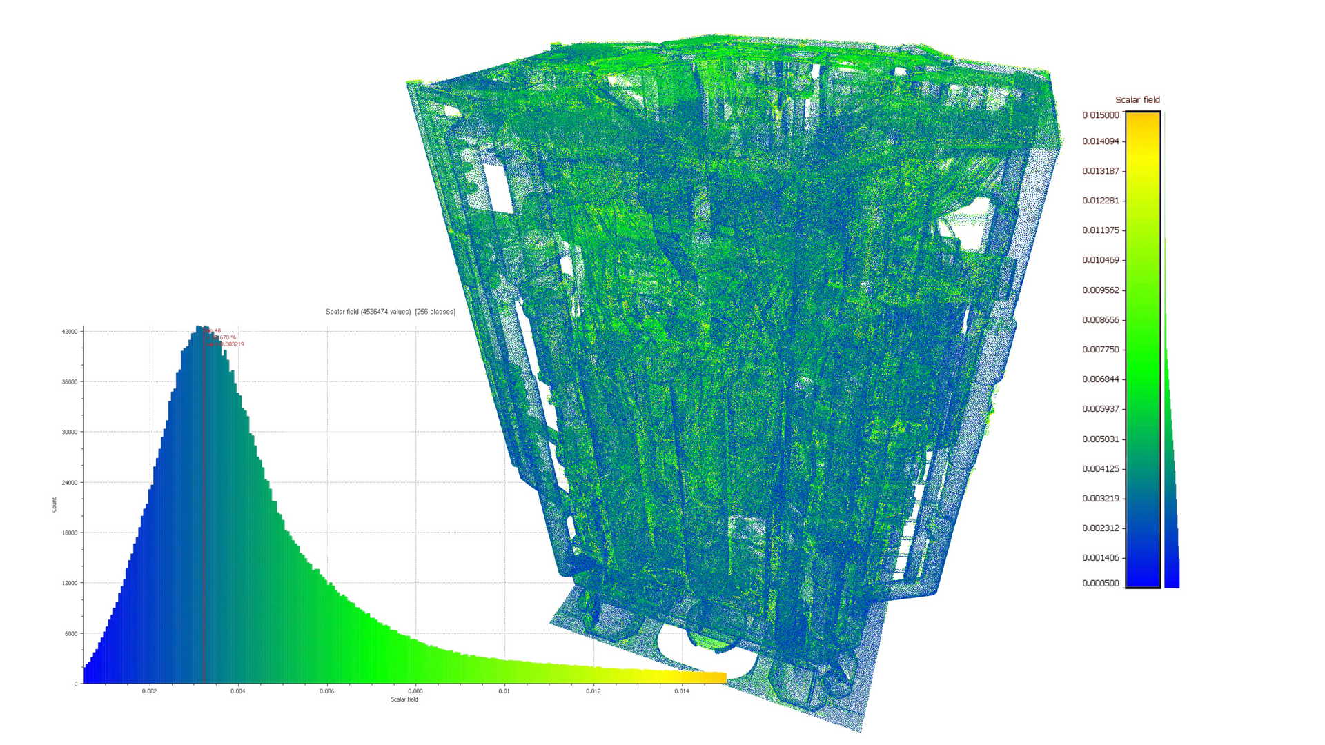 Geometrie für AVEVA PDMS, detailliertes 3D-Modell, registrierte Punktwolke (200 Scans), Deformationsanalyse.