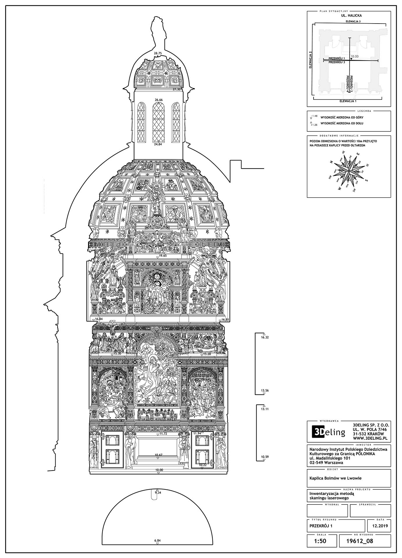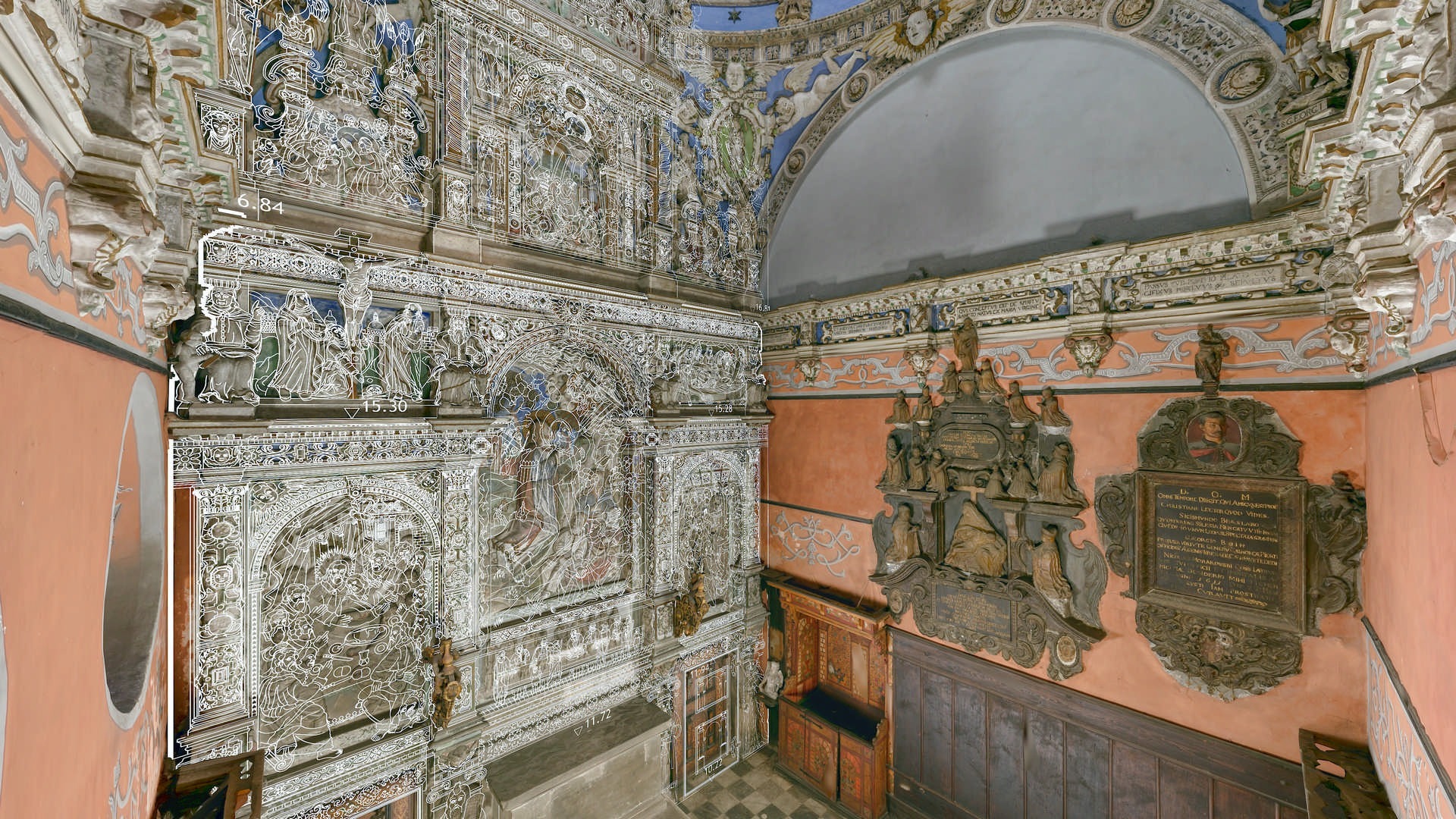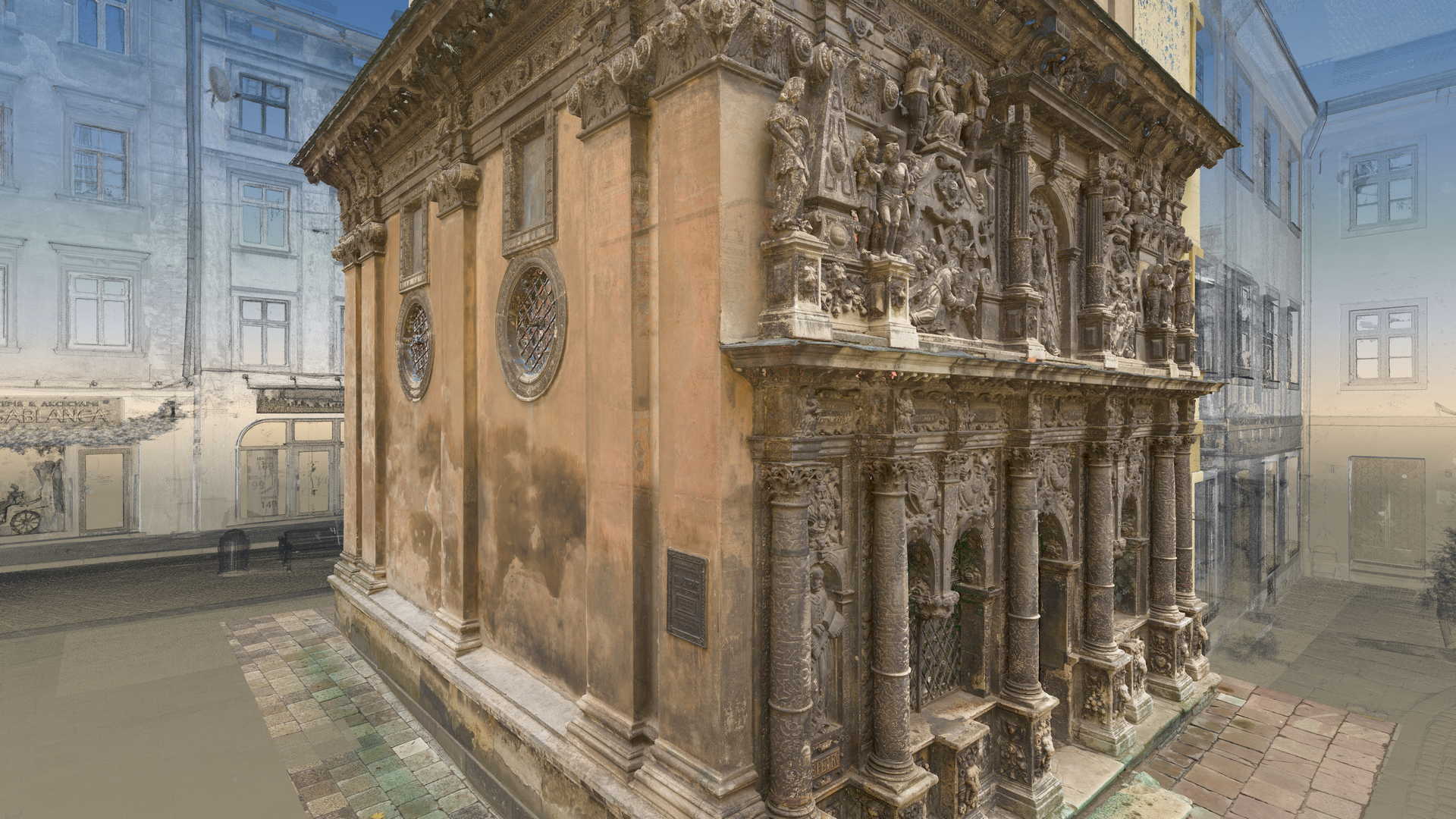 Dieses Projekt, das vom Institut Polonika in Auftrag gegeben und aus öffentlichen Mitteln finanziert wurde, hatte zum Ziel, eine Bestandsaufnahme dieses Renaissancegebäudes durchzuführen. Als Ergebnis lieferten wir eine 2D-Dokumentation der Kapelle, einschließlich Vektorzeichnungen aller, auch der kleinsten architektonischen Details. Wir erzeugten auch ein hochauflösendes, texturiertes (px c.a. 1 mm) High-Poly-Mesh-Modell.