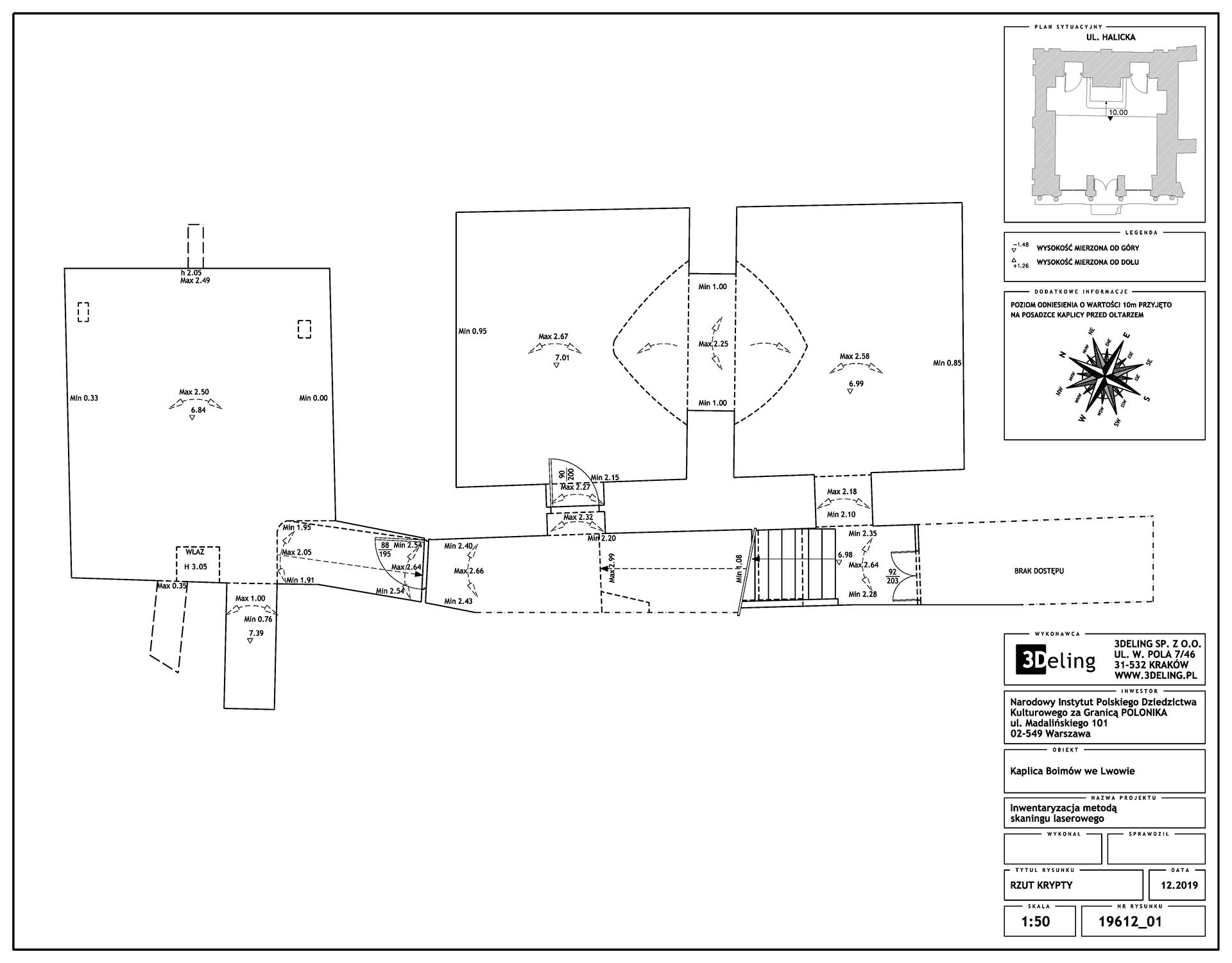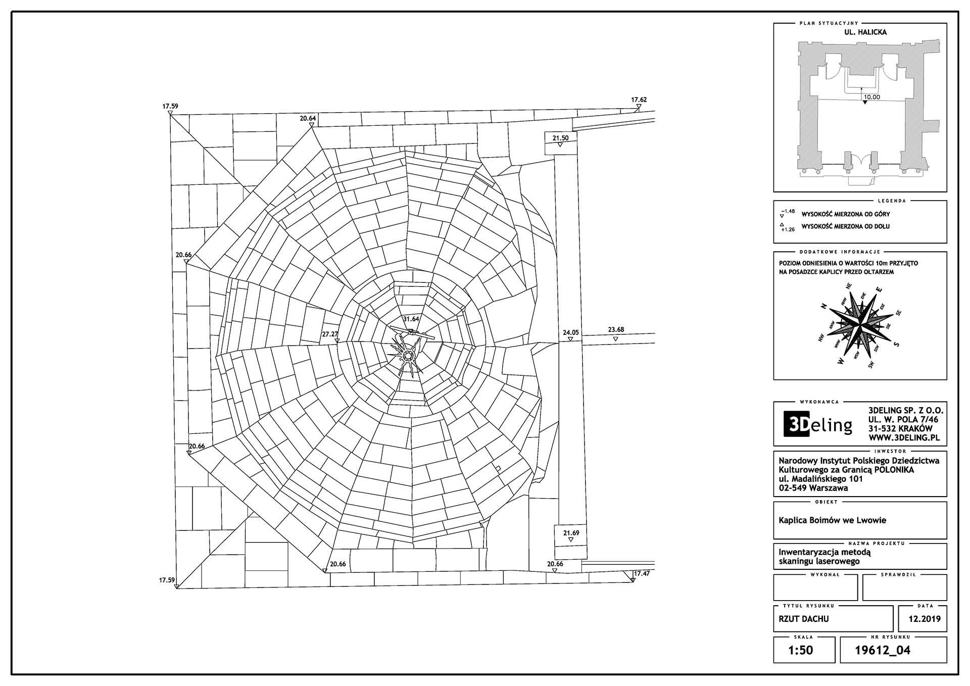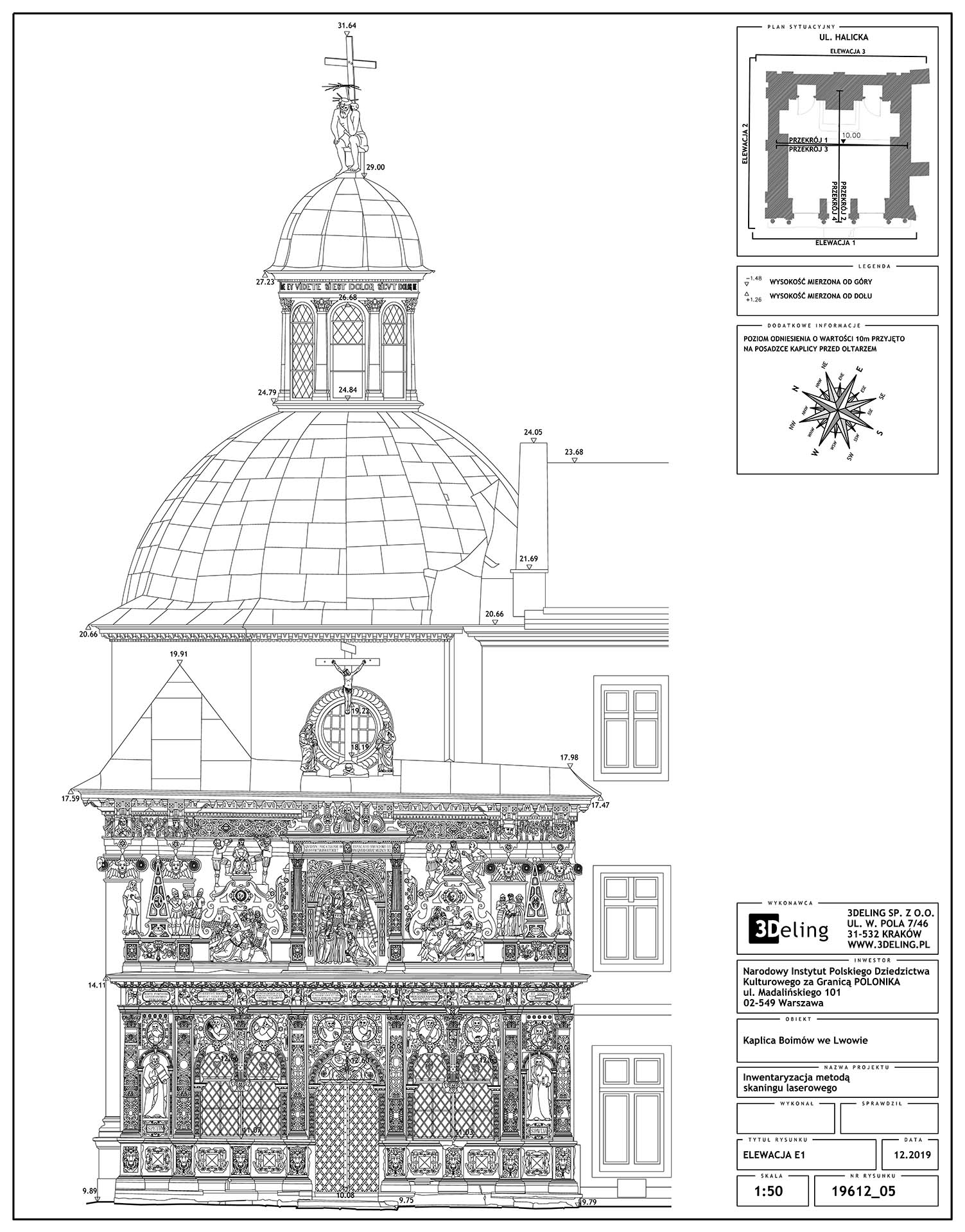 Dieses Projekt, das vom Institut Polonika in Auftrag gegeben und aus öffentlichen Mitteln finanziert wurde, hatte zum Ziel, eine Bestandsaufnahme dieses Renaissancegebäudes durchzuführen. Als Ergebnis lieferten wir eine 2D-Dokumentation der Kapelle, einschließlich Vektorzeichnungen aller, auch der kleinsten architektonischen Details. Wir erzeugten auch ein hochauflösendes, texturiertes (px c.a. 1 mm) High-Poly-Mesh-Modell.