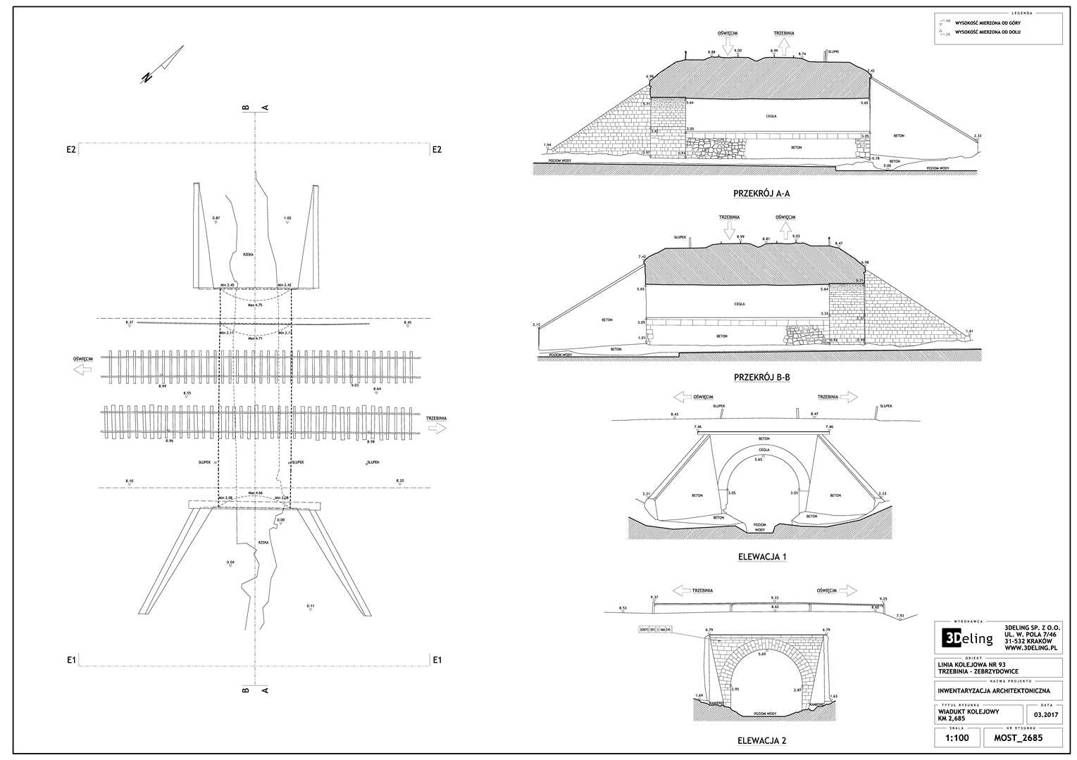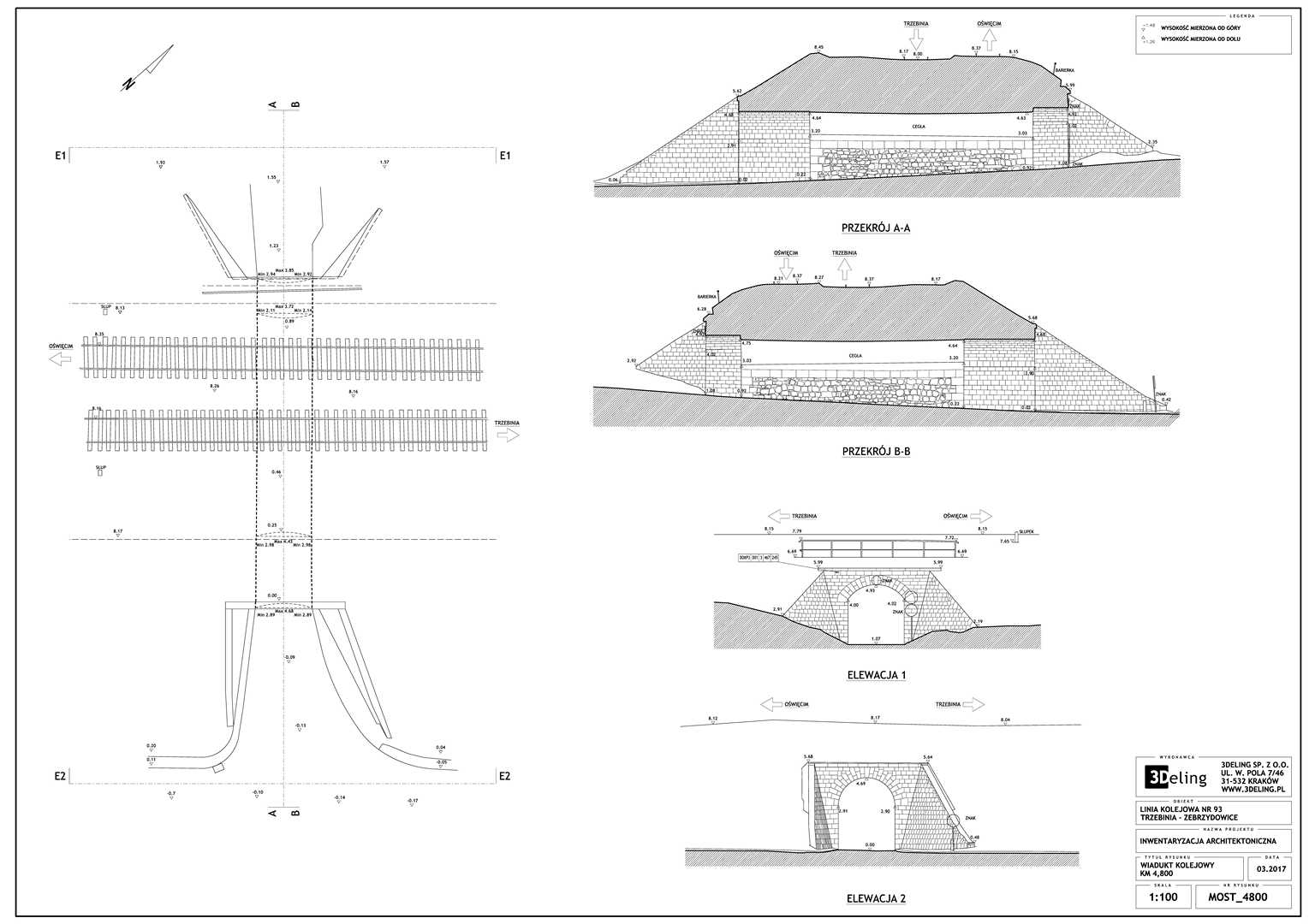 Die Arbeiten wurden von PLK im Rahmen der Modernisierung der Bahnstrecke Oświęcim-Trzebinia in Auftrag gegeben. Dieser Auftrag umfasste die umfangreiche Aufzeichnung von 4 Brücken- und Viaduktstrukturen. Die Objekte stammten aus der ursprünglichen Konstruktion der Strecke. Aus diesem Grund wurden alle unsere Arbeiten gemäß den strengen Richtlinien des Denkmalpflegers durchgeführt.