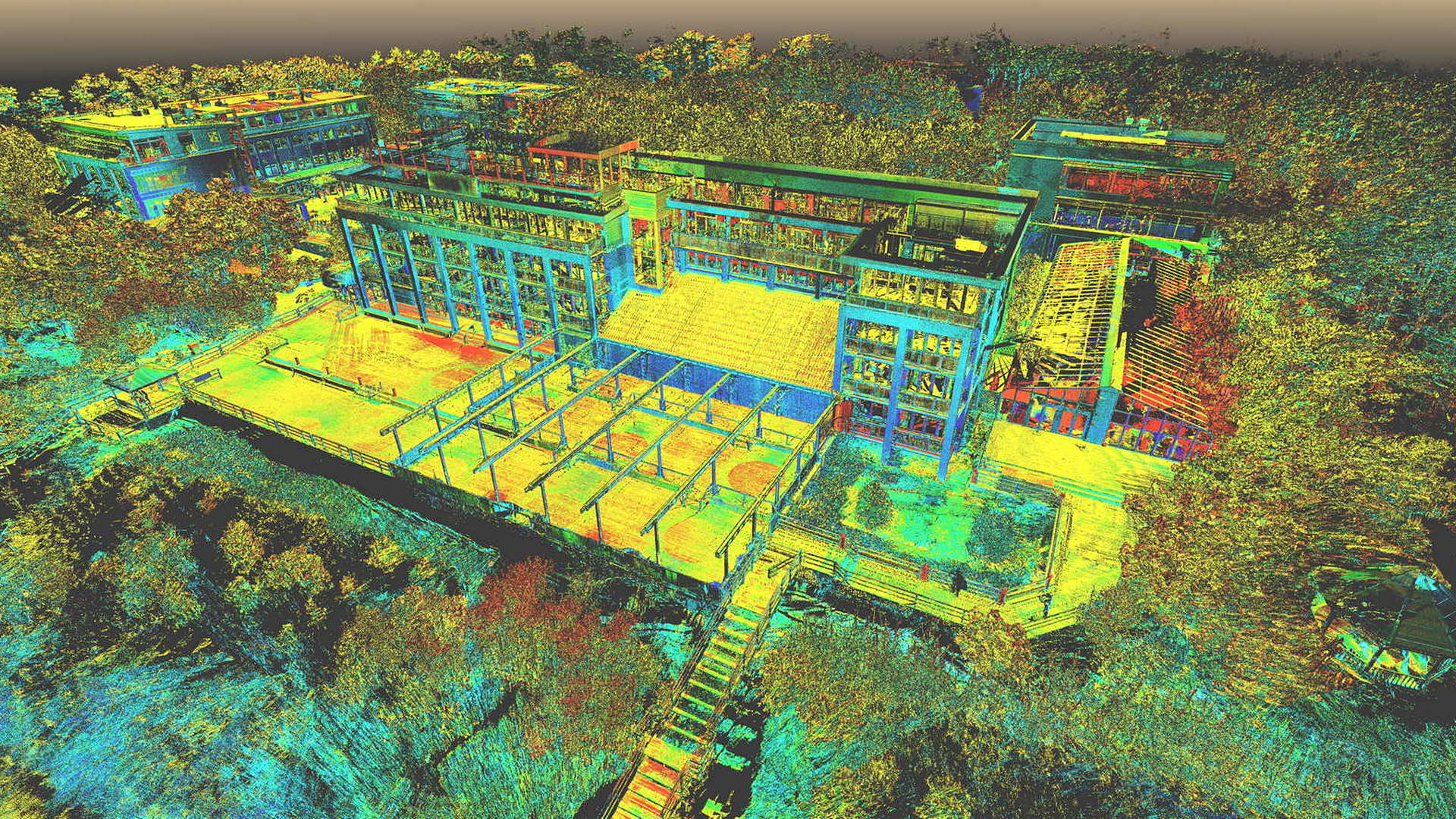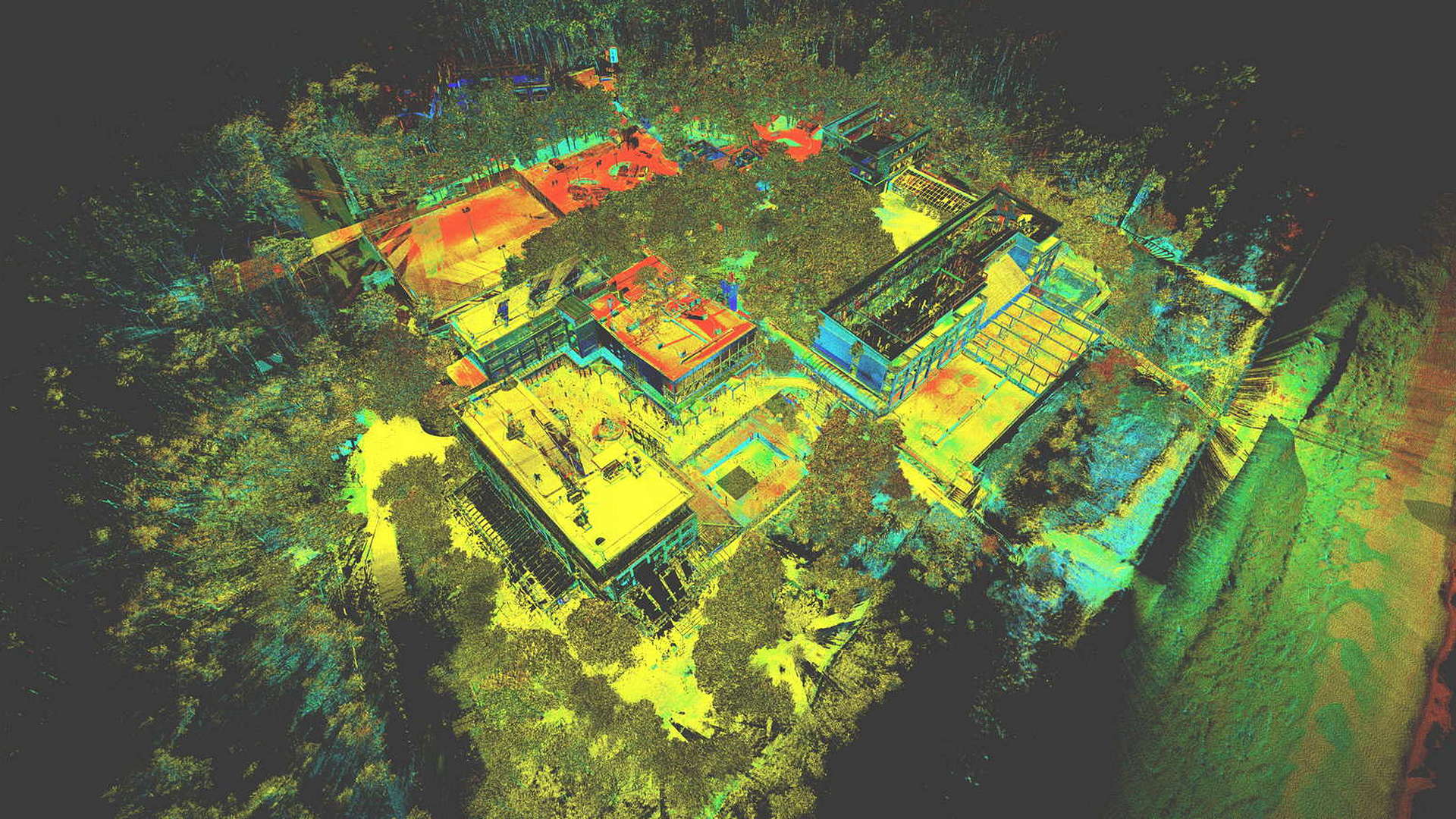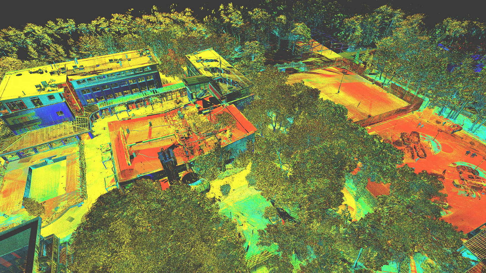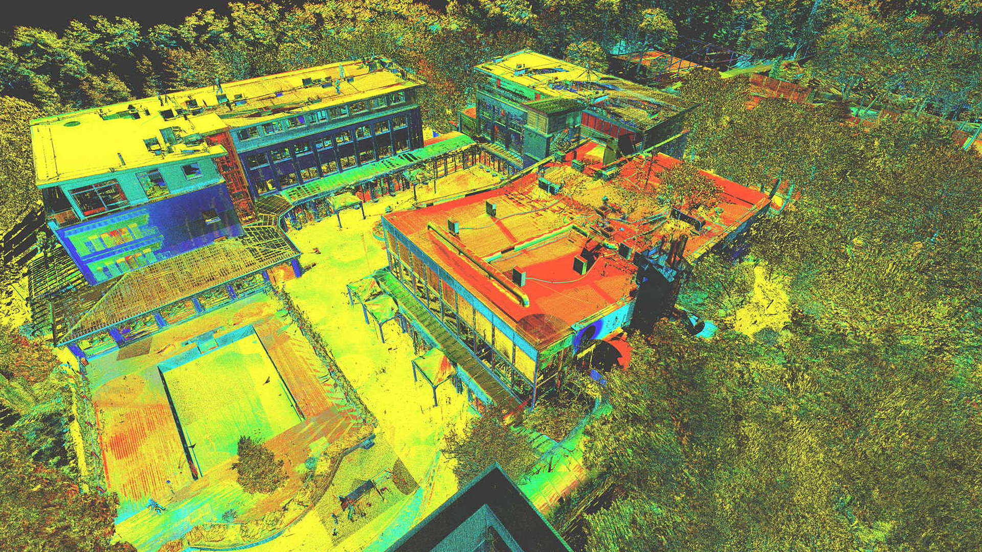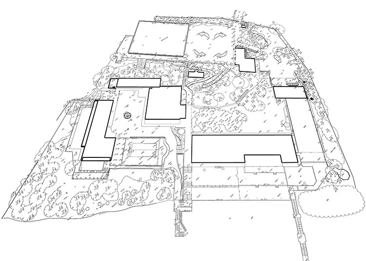 Für den externen Bereich wurde eine 2D-Topographievermessung des gesamten Campus sowie der Außenfassaden aller Gebäude erstellt. Für die intern erfassten Gebäude wurden 2D-Grundrisse erstellt. Alle Arbeiten vor Ort wurden während der geschlossenen Saison durchgeführt, wobei das Winterwetter seine eigenen Herausforderungen mit sich brachte.