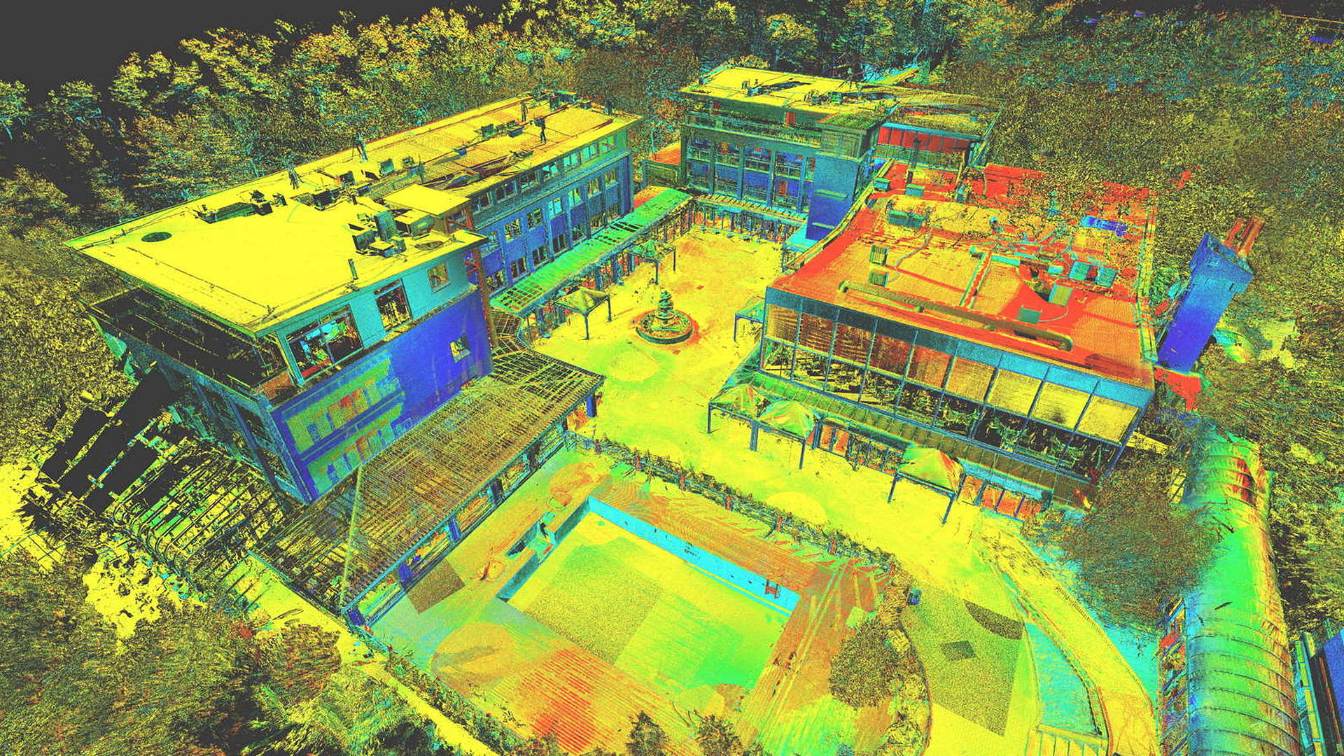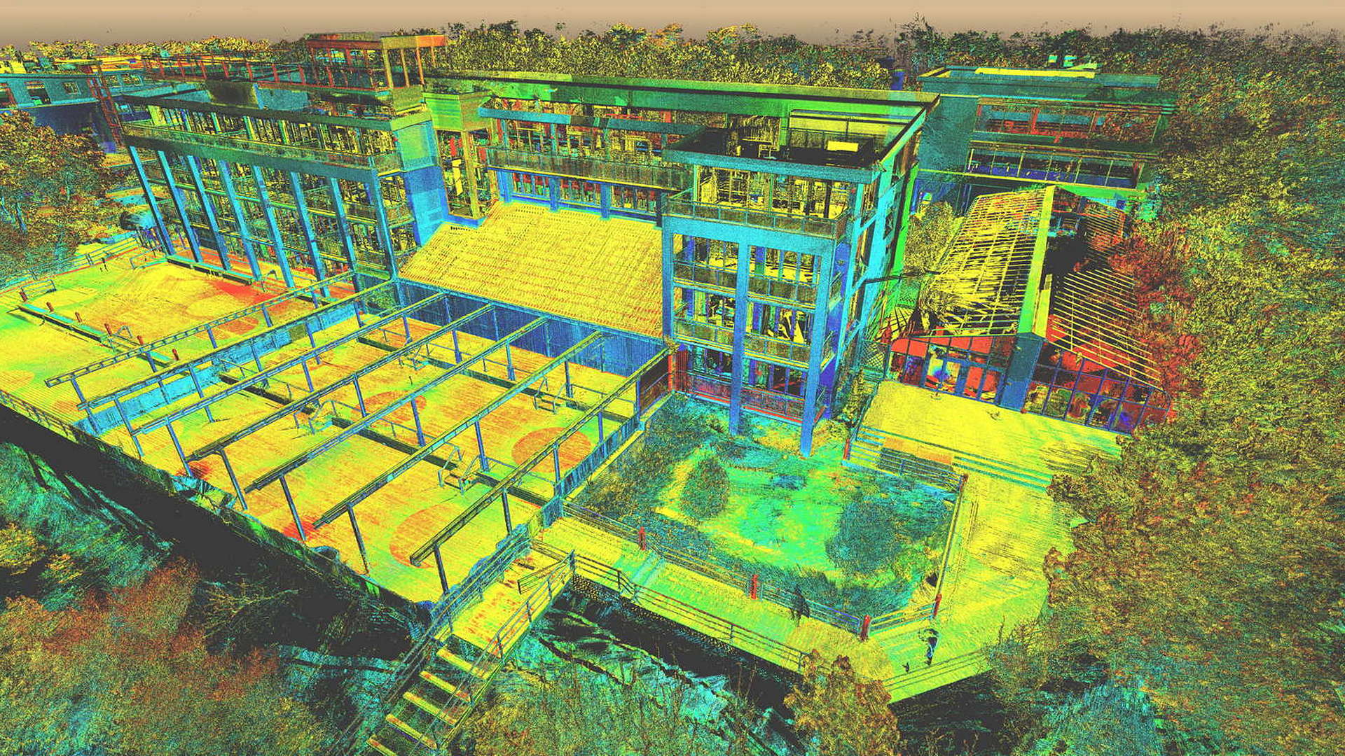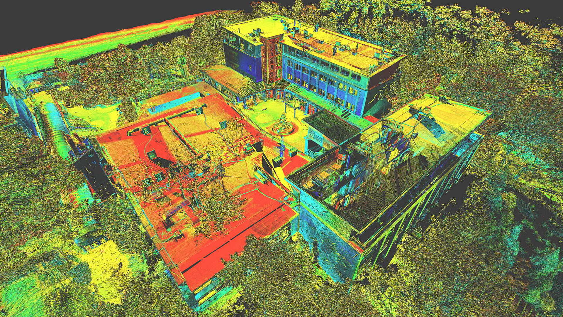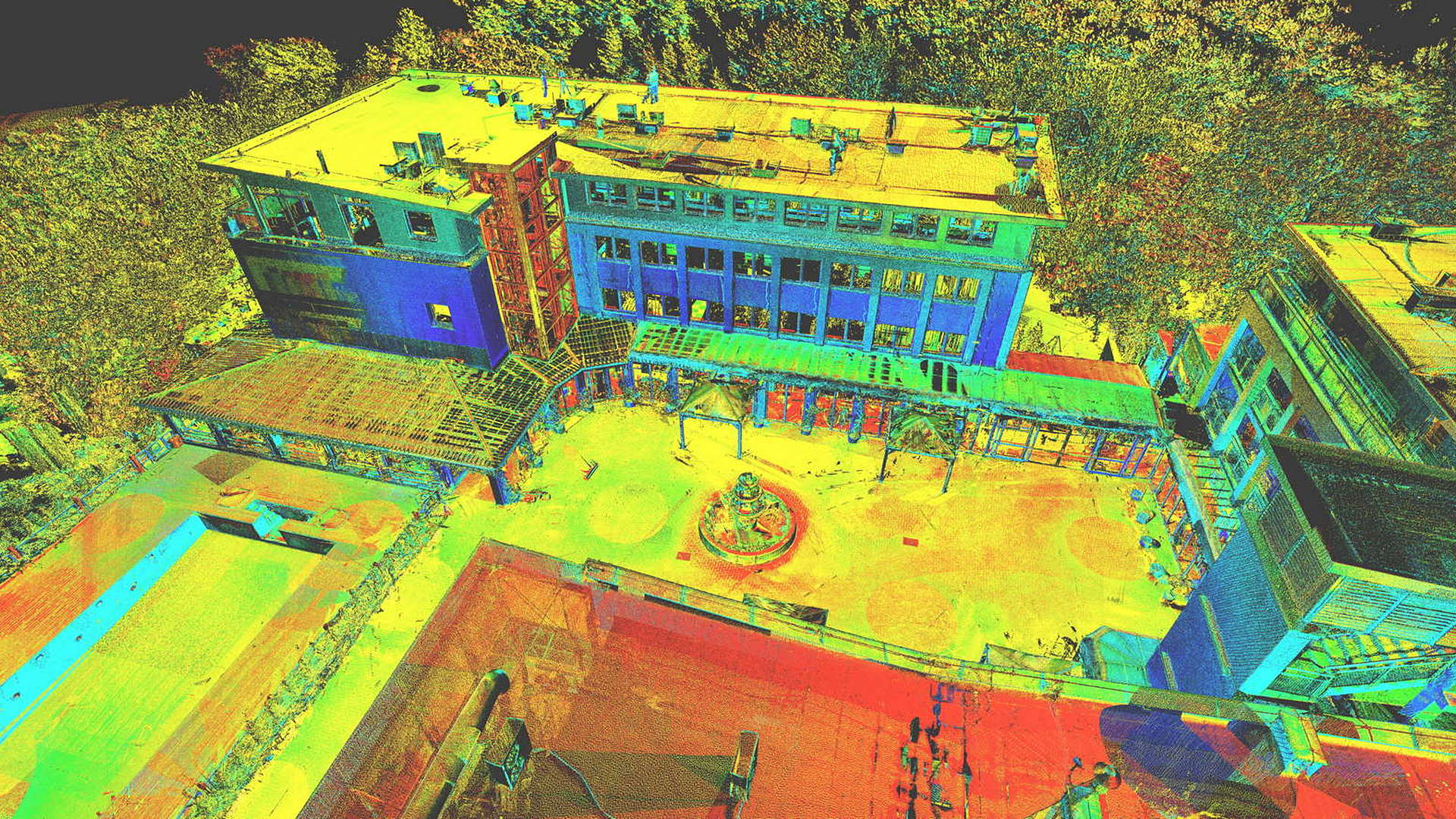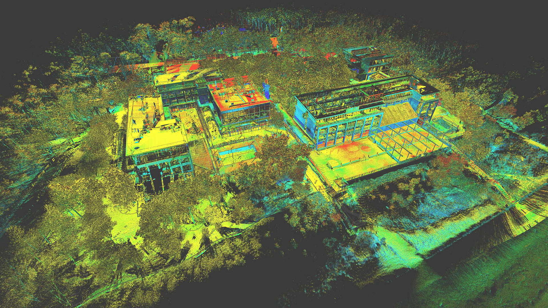 Für den externen Bereich wurde eine 2D-Topographievermessung des gesamten Campus sowie der Außenfassaden aller Gebäude erstellt. Für die intern erfassten Gebäude wurden 2D-Grundrisse erstellt. Alle Arbeiten vor Ort wurden während der geschlossenen Saison durchgeführt, wobei das Winterwetter seine eigenen Herausforderungen mit sich brachte.
