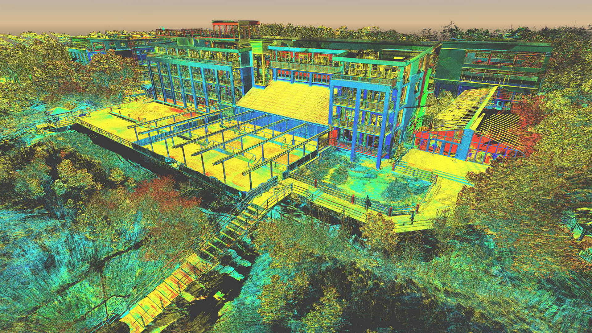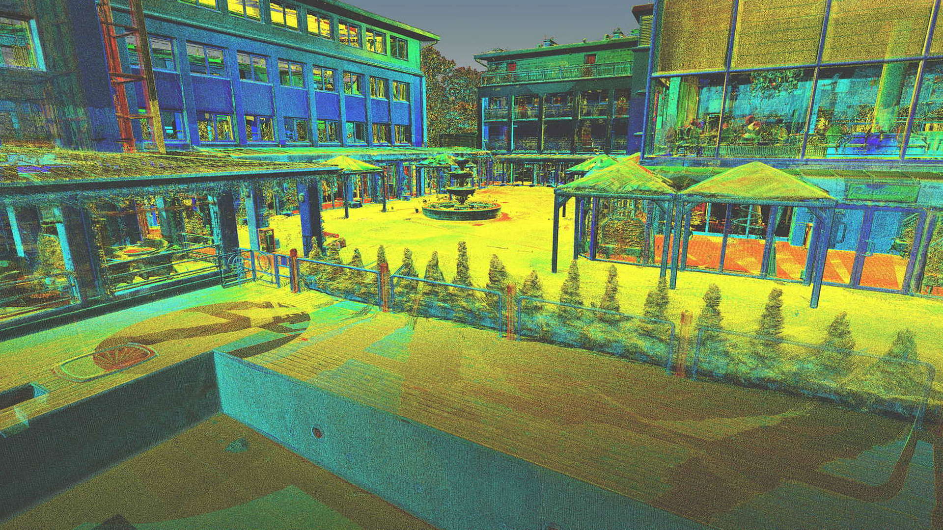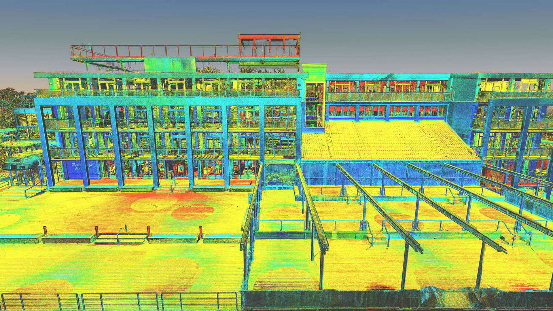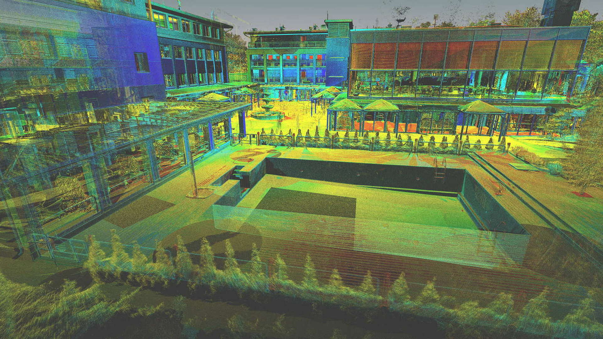 Für den externen Bereich wurde eine 2D-Topographievermessung des gesamten Campus sowie der Außenfassaden aller Gebäude erstellt. Für die intern erfassten Gebäude wurden 2D-Grundrisse erstellt. Alle Arbeiten vor Ort wurden während der geschlossenen Saison durchgeführt, wobei das Winterwetter seine eigenen Herausforderungen mit sich brachte.