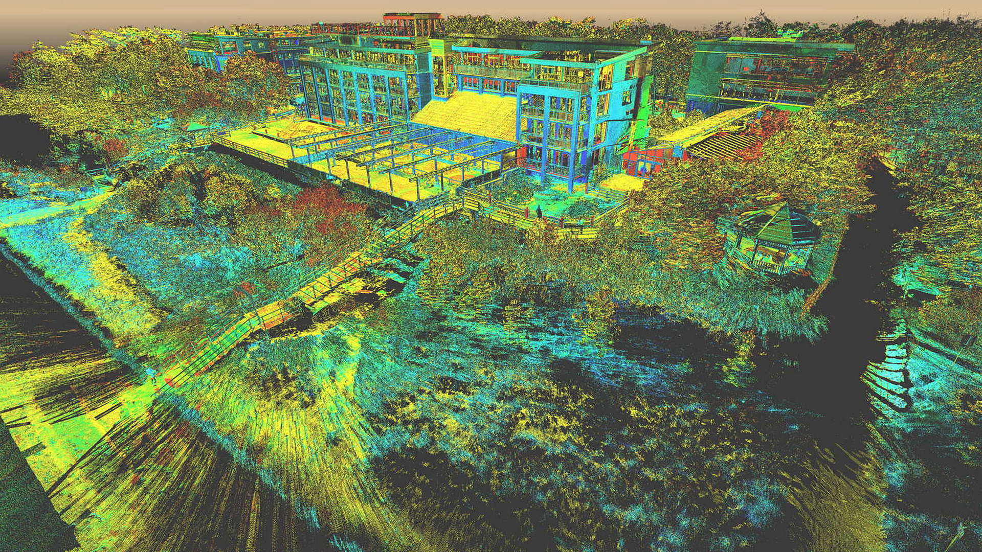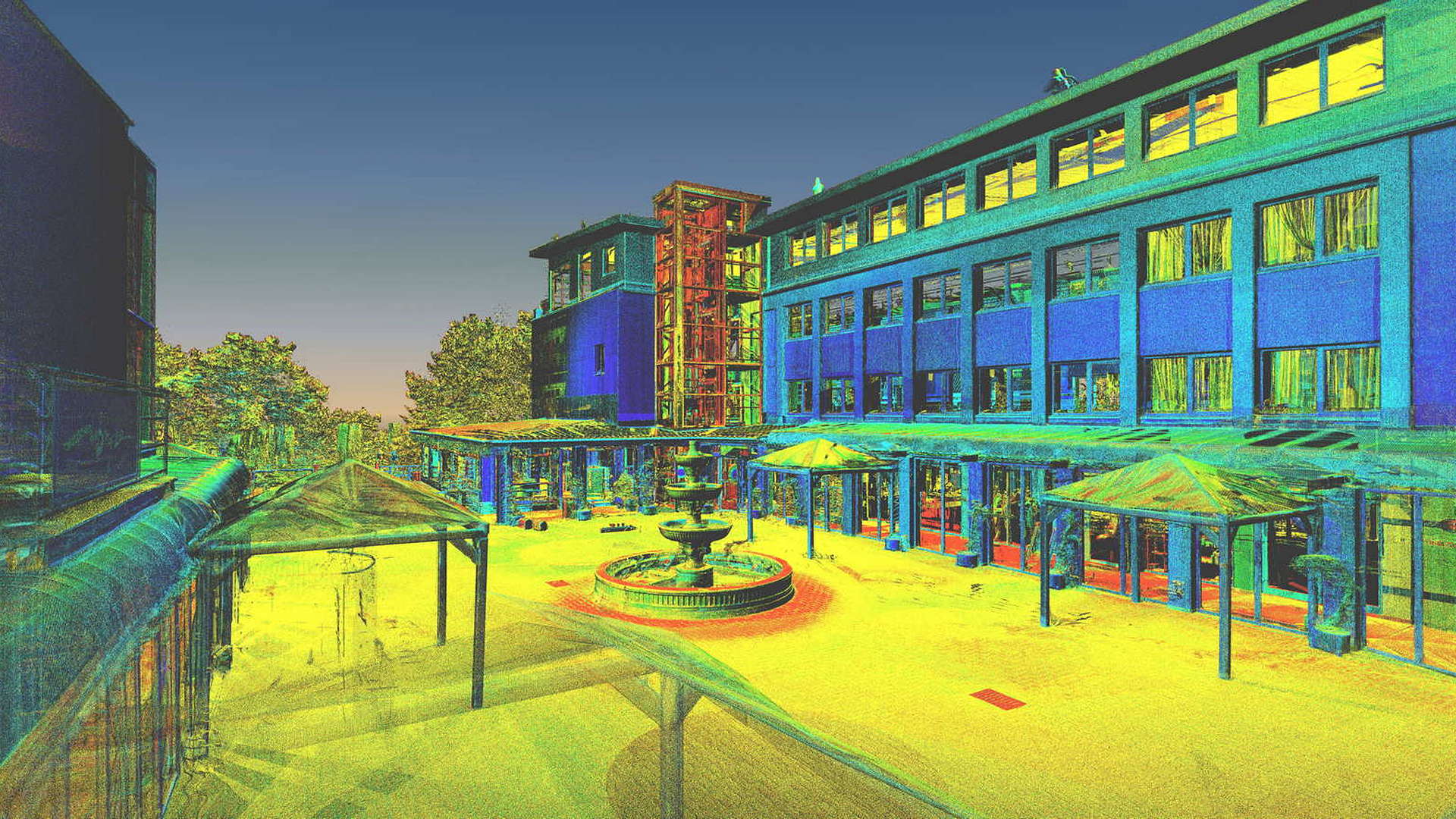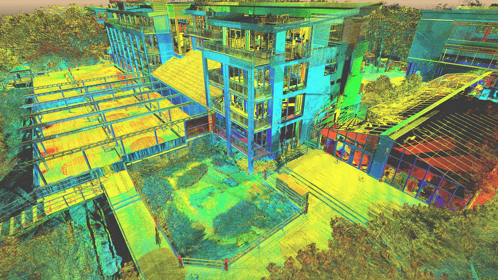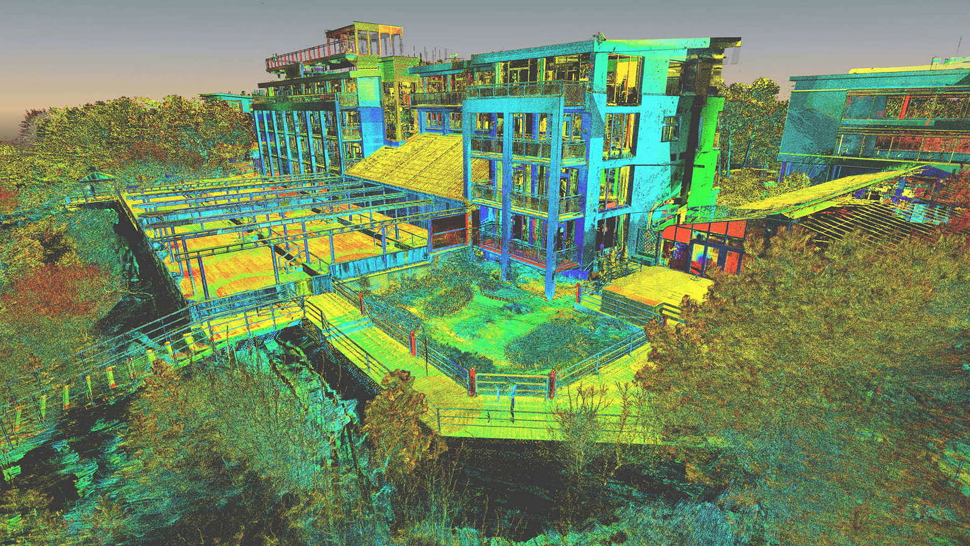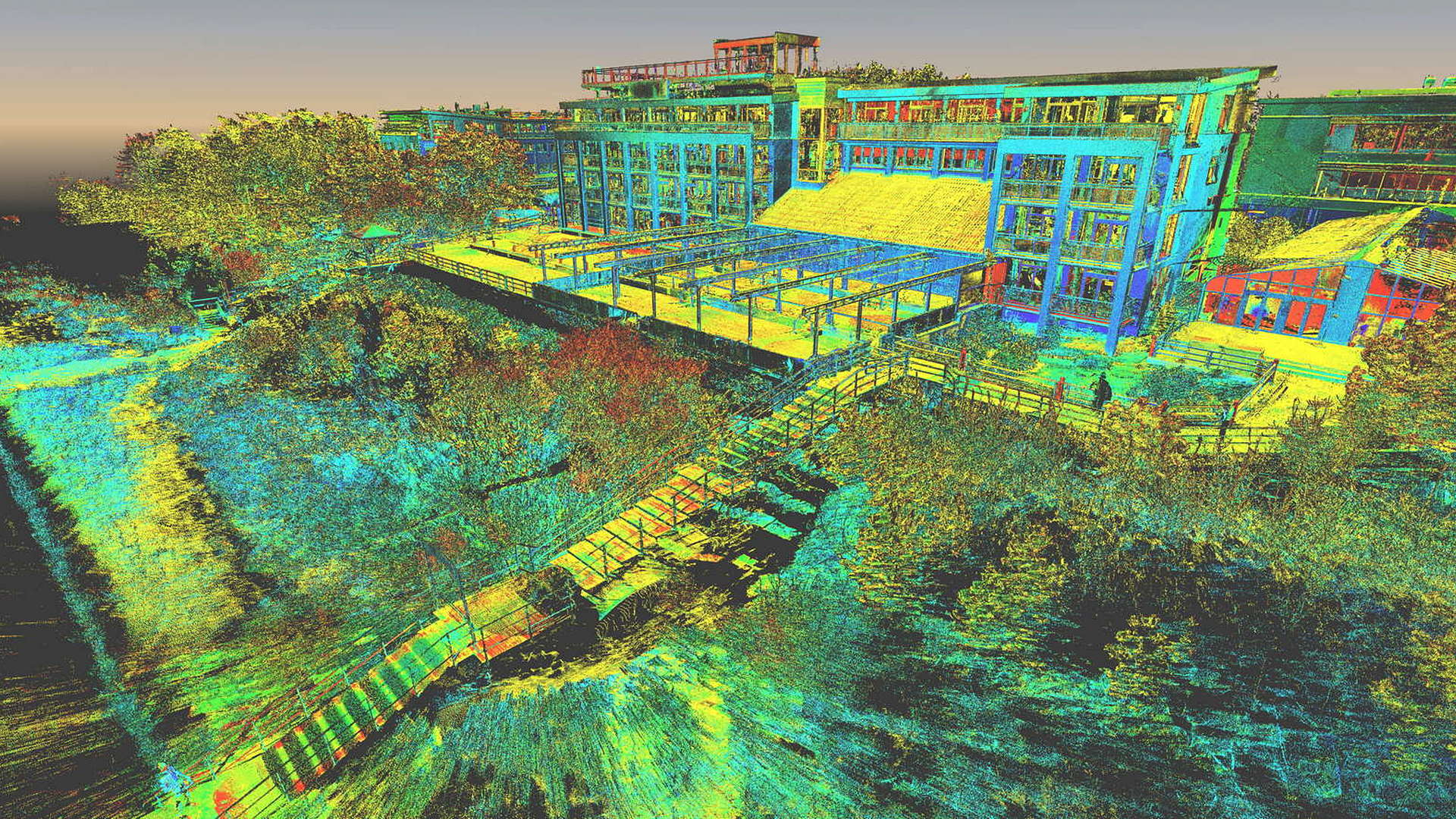 Für den externen Bereich wurde eine 2D-Topographievermessung des gesamten Campus sowie der Außenfassaden aller Gebäude erstellt. Für die intern erfassten Gebäude wurden 2D-Grundrisse erstellt. Alle Arbeiten vor Ort wurden während der geschlossenen Saison durchgeführt, wobei das Winterwetter seine eigenen Herausforderungen mit sich brachte.
