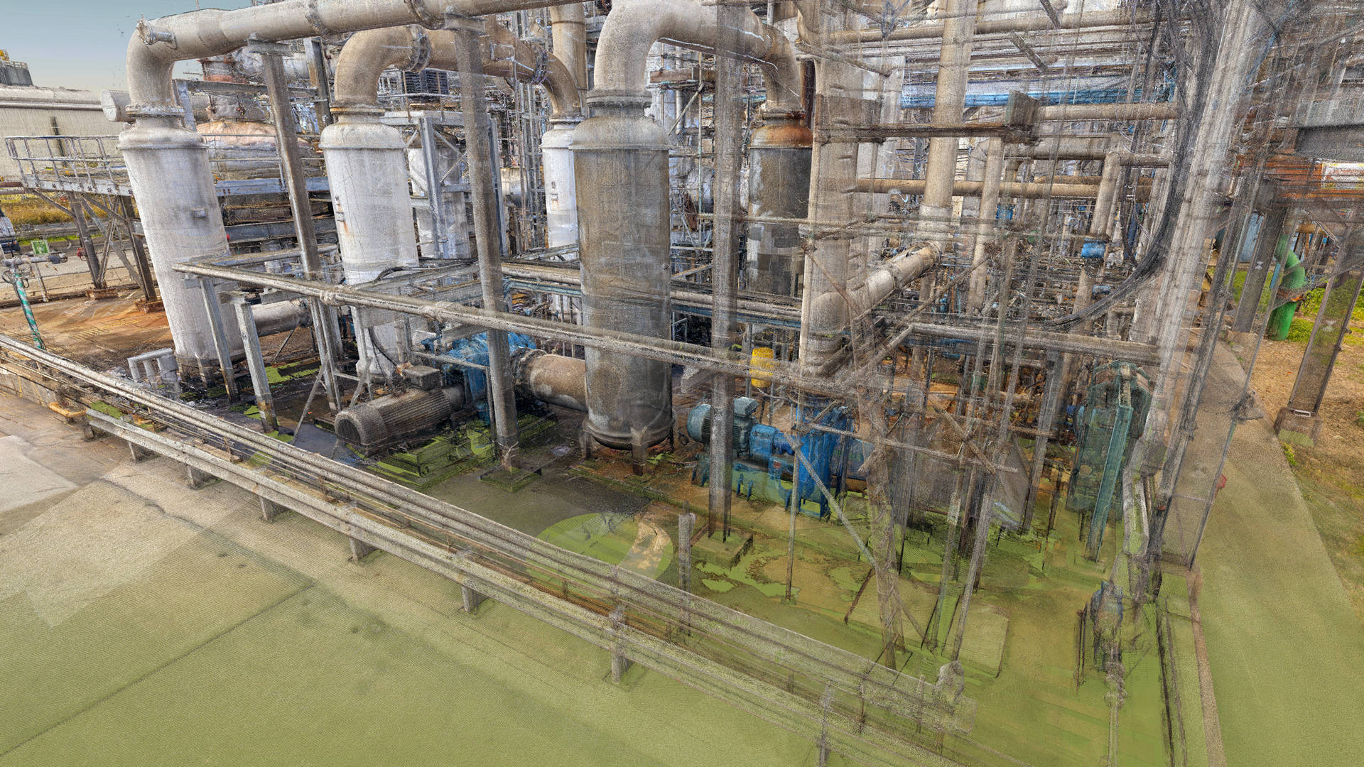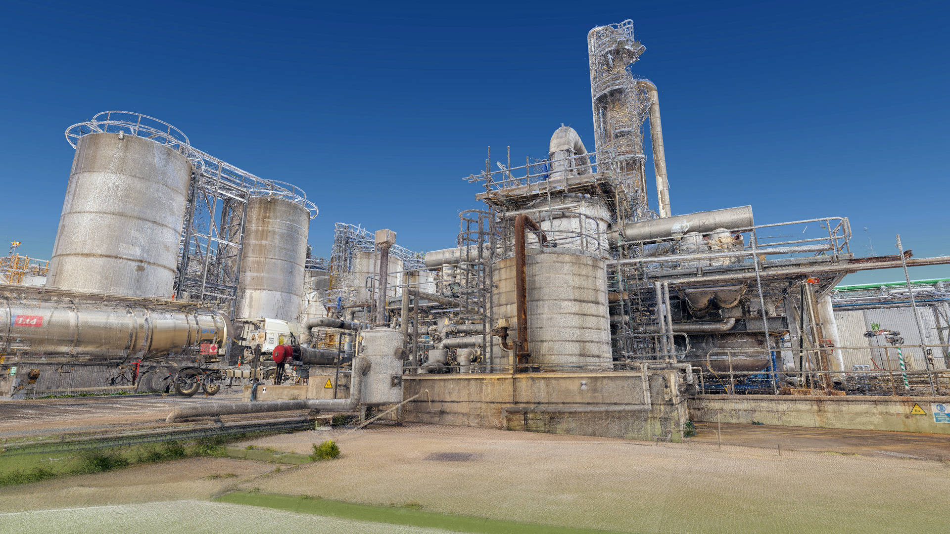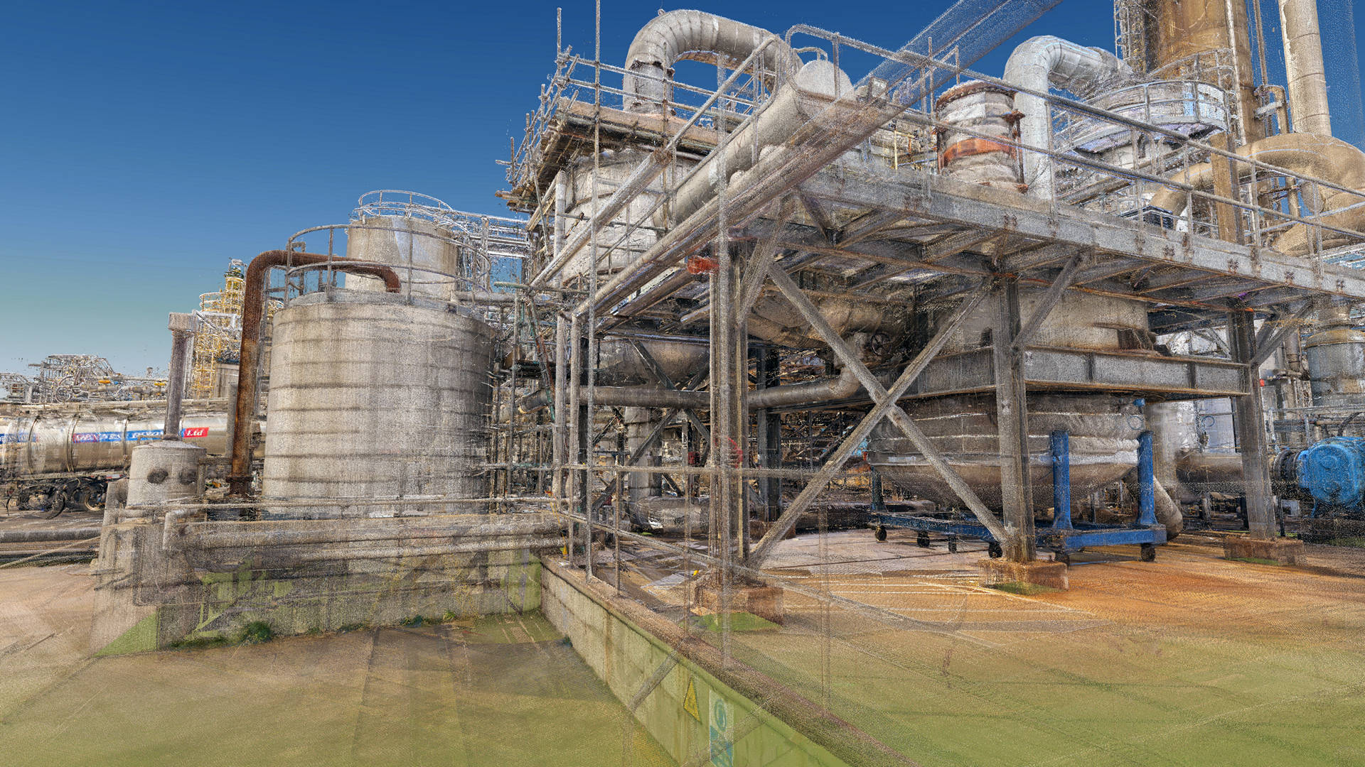 Neben Vermessungs- und Modellierungsarbeiten an dieser Stelle haben wir weitere digitale Analysearbeiten durchgeführt, einschließlich Kollisionserkennung für neue Installationen, Tankleckageanalyse und Empfehlungen für die Installation von Barrieren und Auffangwannen zur Begrenzung des Ausmaßes von Flüssigkeitsleckagen.
