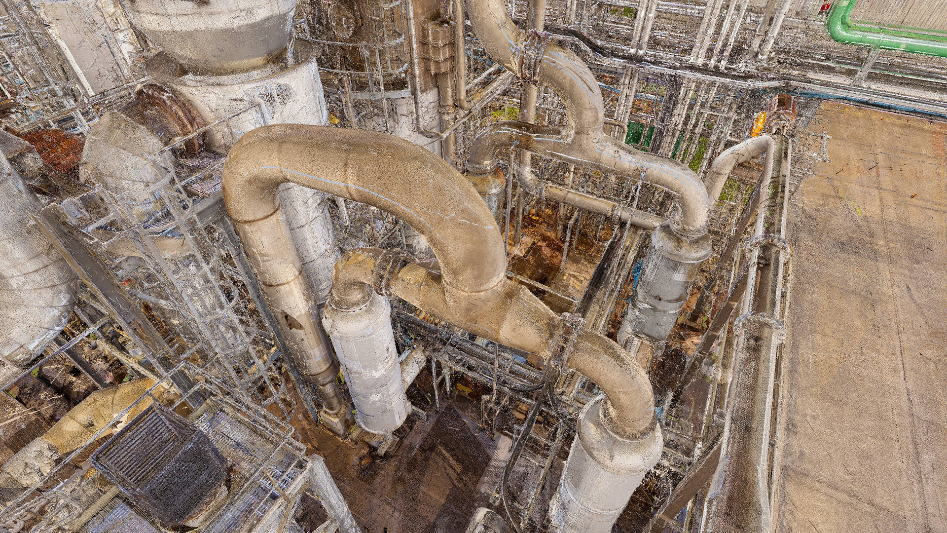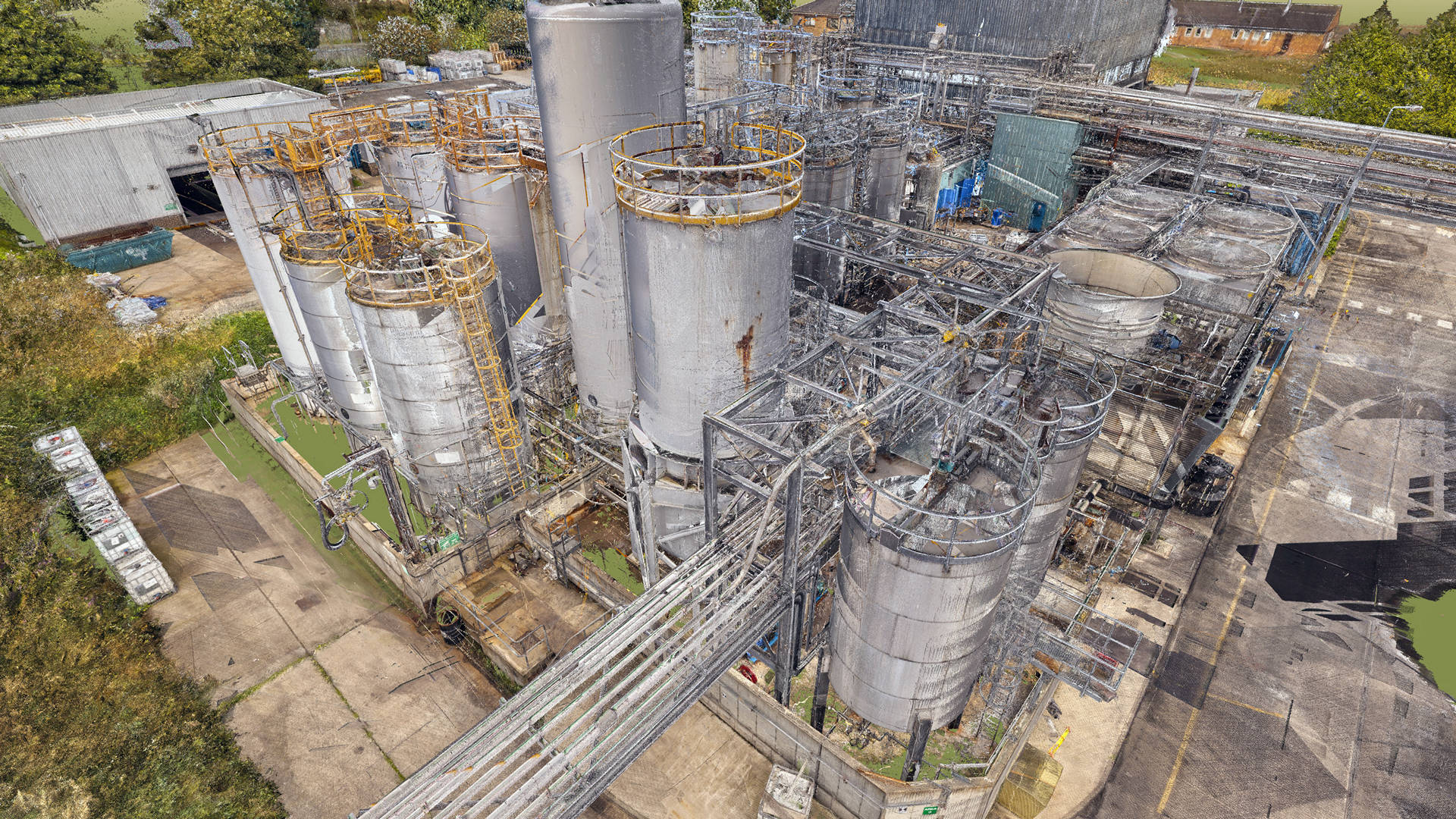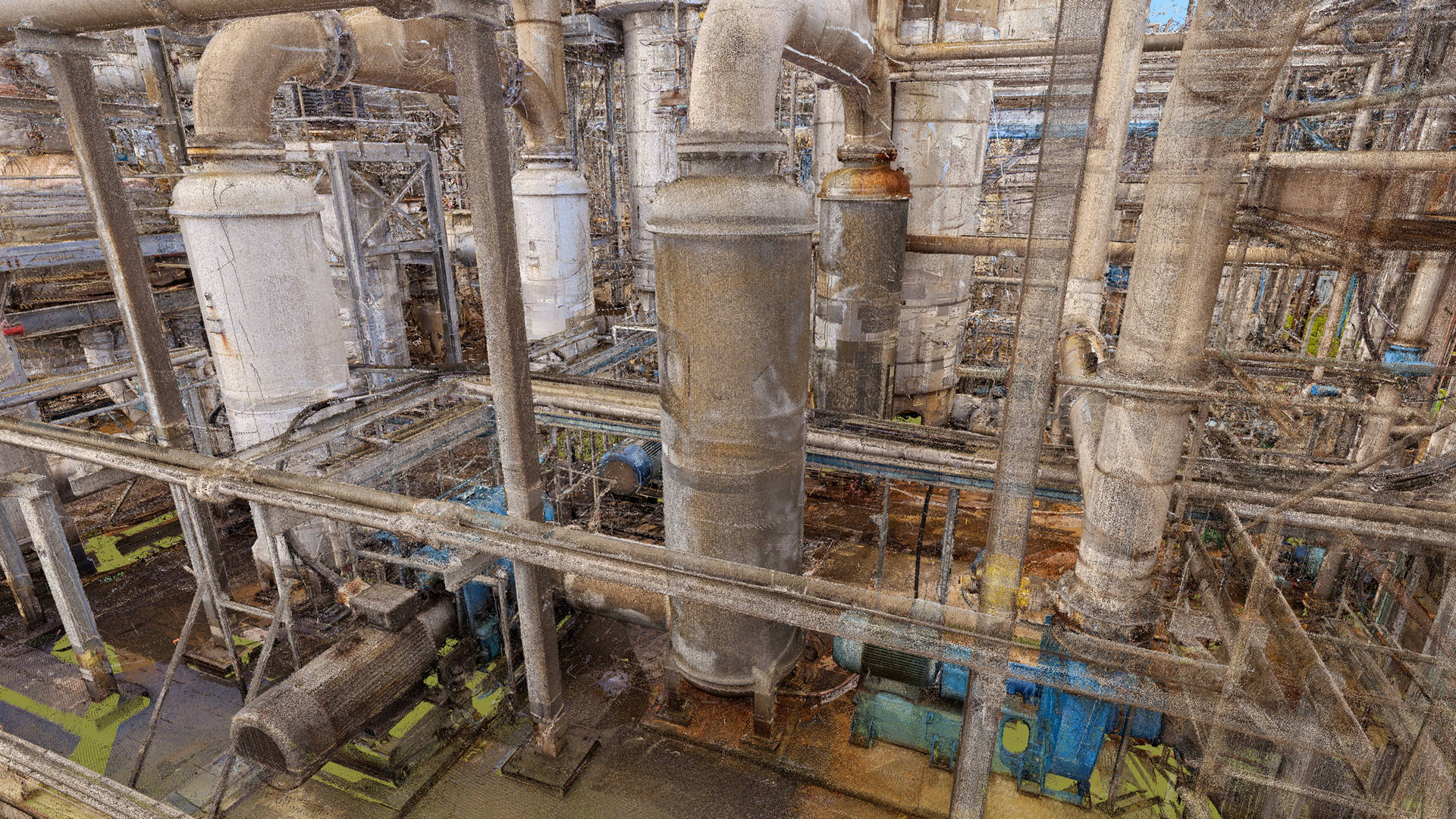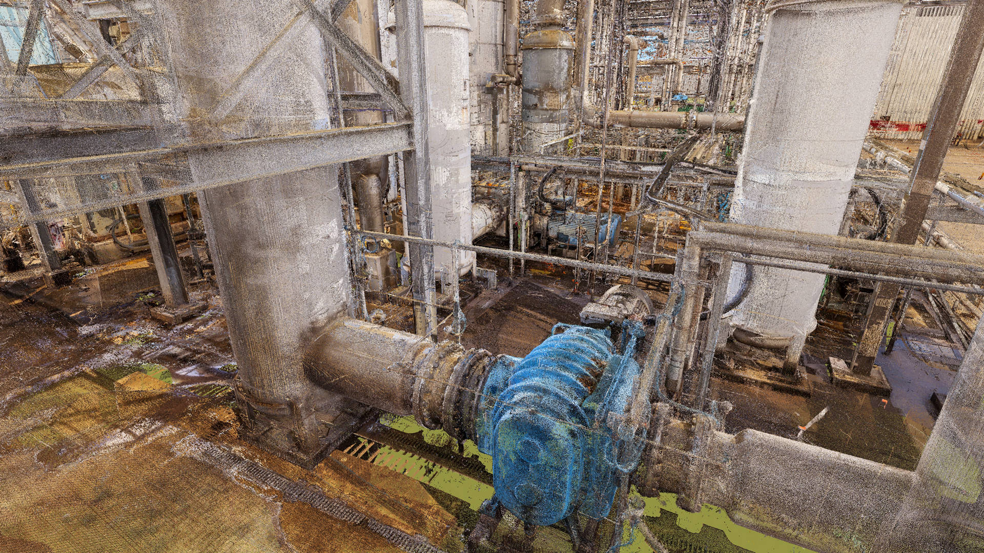 Neben Vermessungs- und Modellierungsarbeiten an dieser Stelle haben wir weitere digitale Analysearbeiten durchgeführt, einschließlich Kollisionserkennung für neue Installationen, Tankleckageanalyse und Empfehlungen für die Installation von Barrieren und Auffangwannen zur Begrenzung des Ausmaßes von Flüssigkeitsleckagen.