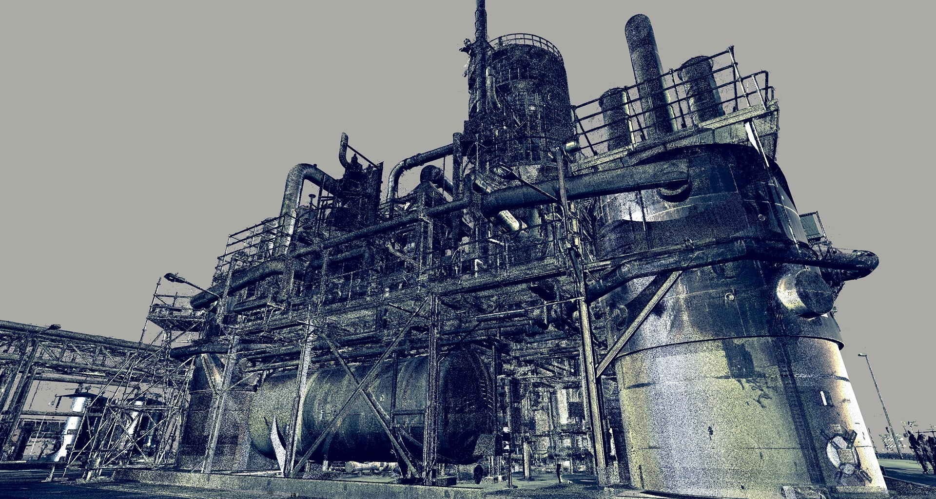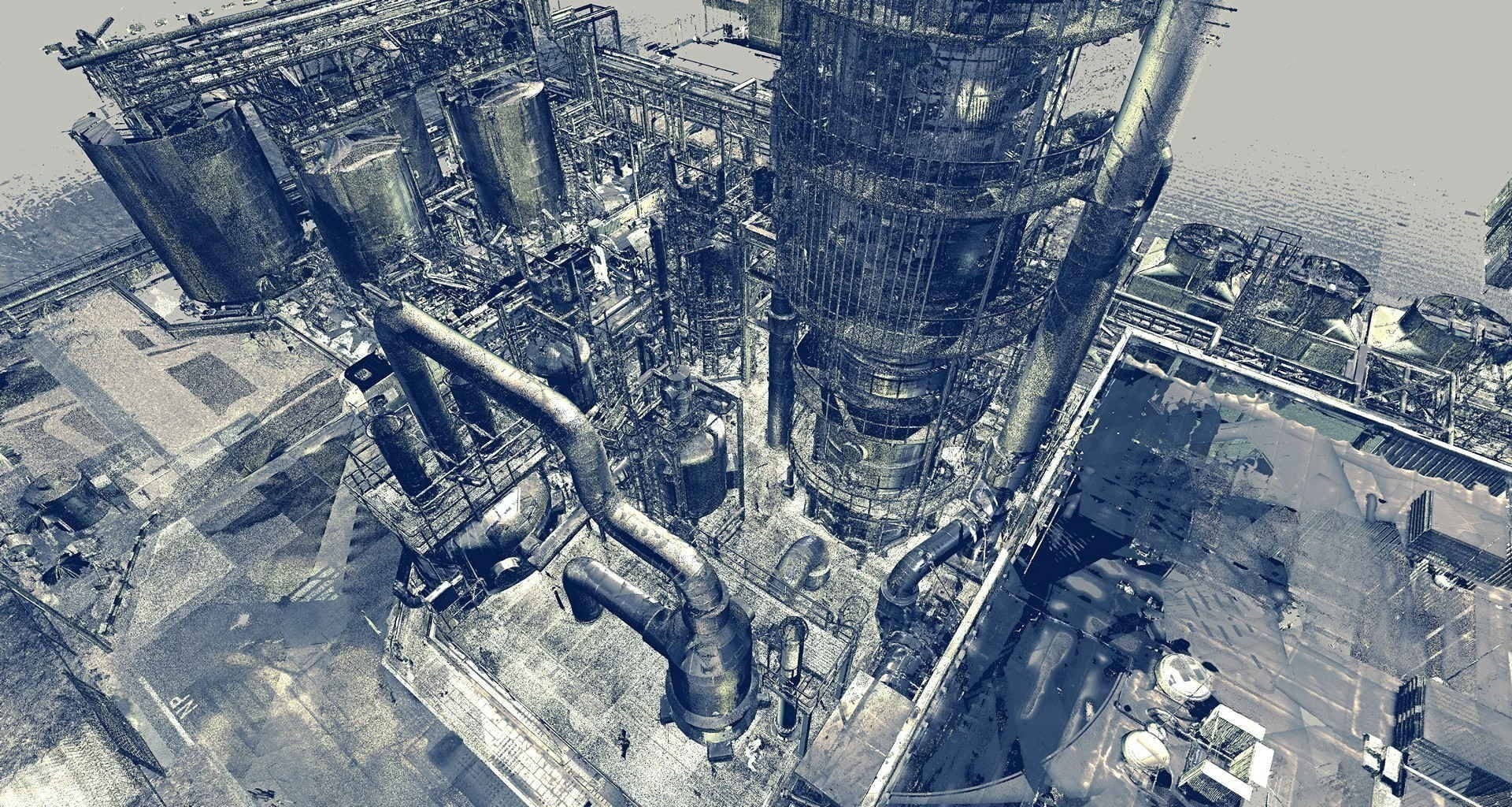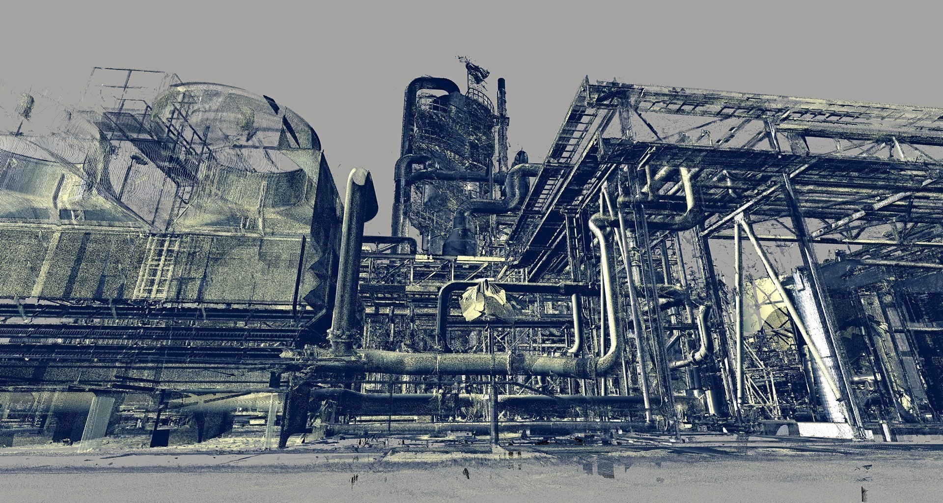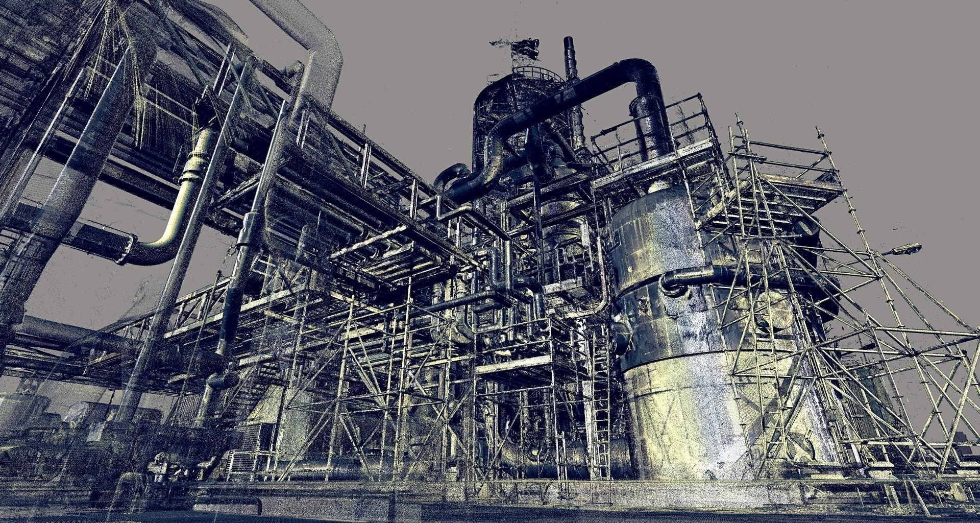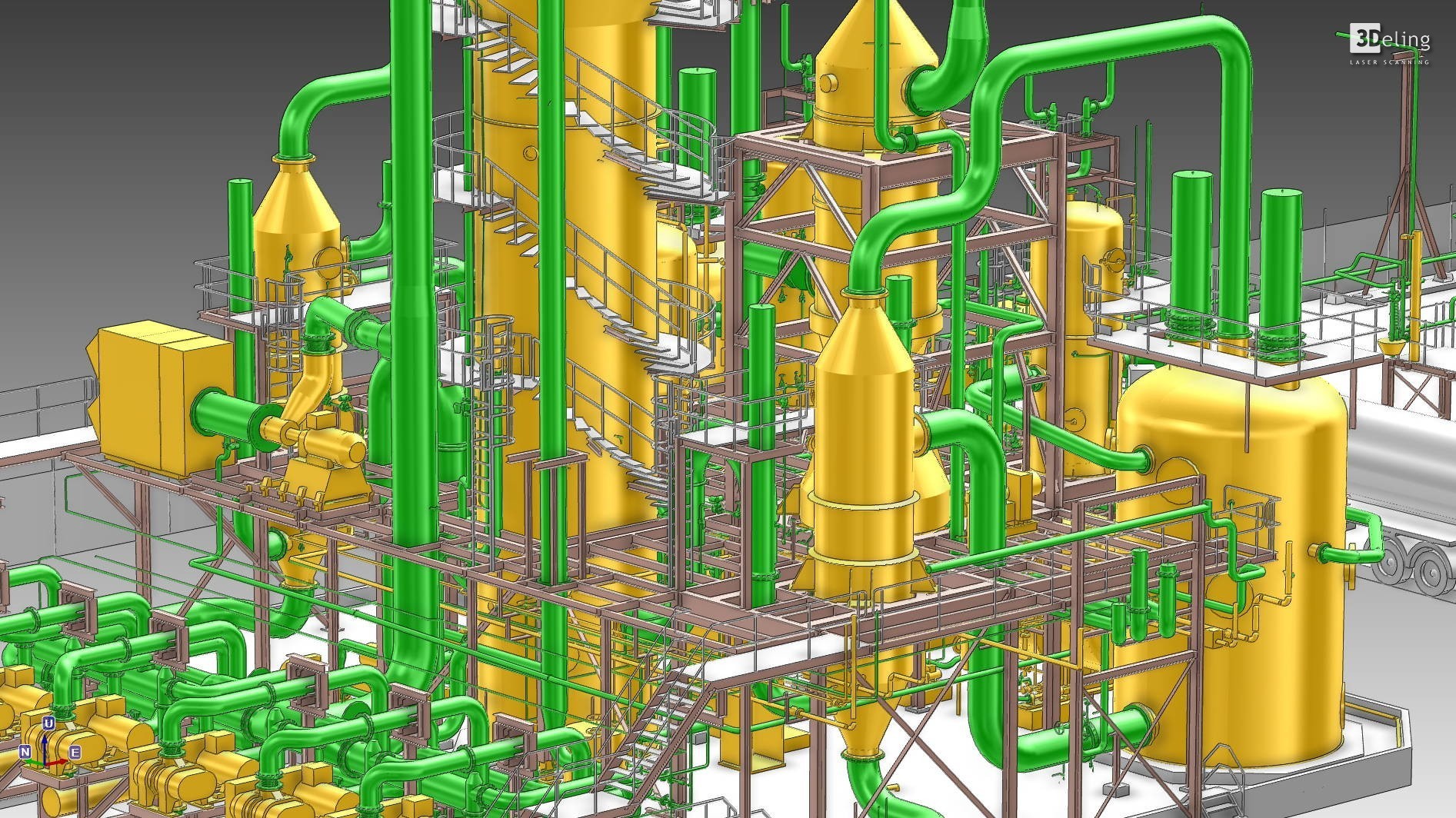 Da die Anlage während des Vermessungsprozesses in Betrieb blieb, musste man auf günstige Windbedingungen warten, um einzelne Scans abzuschließen. Nach dem Erfassen des Punktwolken wurde 3Deling beauftragt, ein AVEVA PDMS-Modell mit vollständigem Katalog zu erstellen.