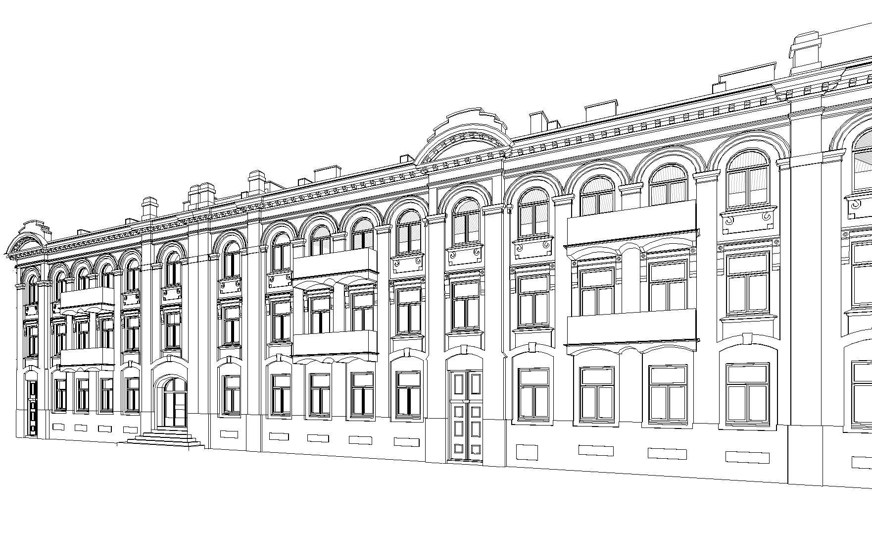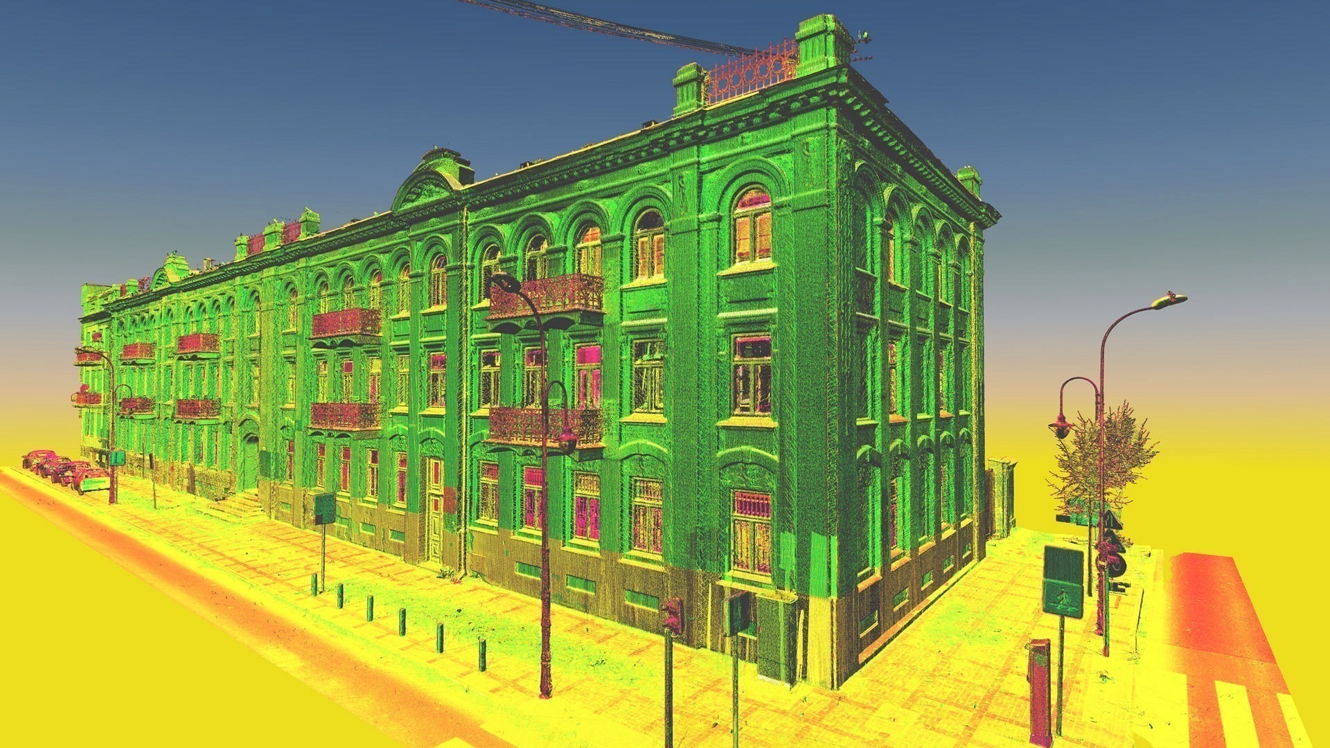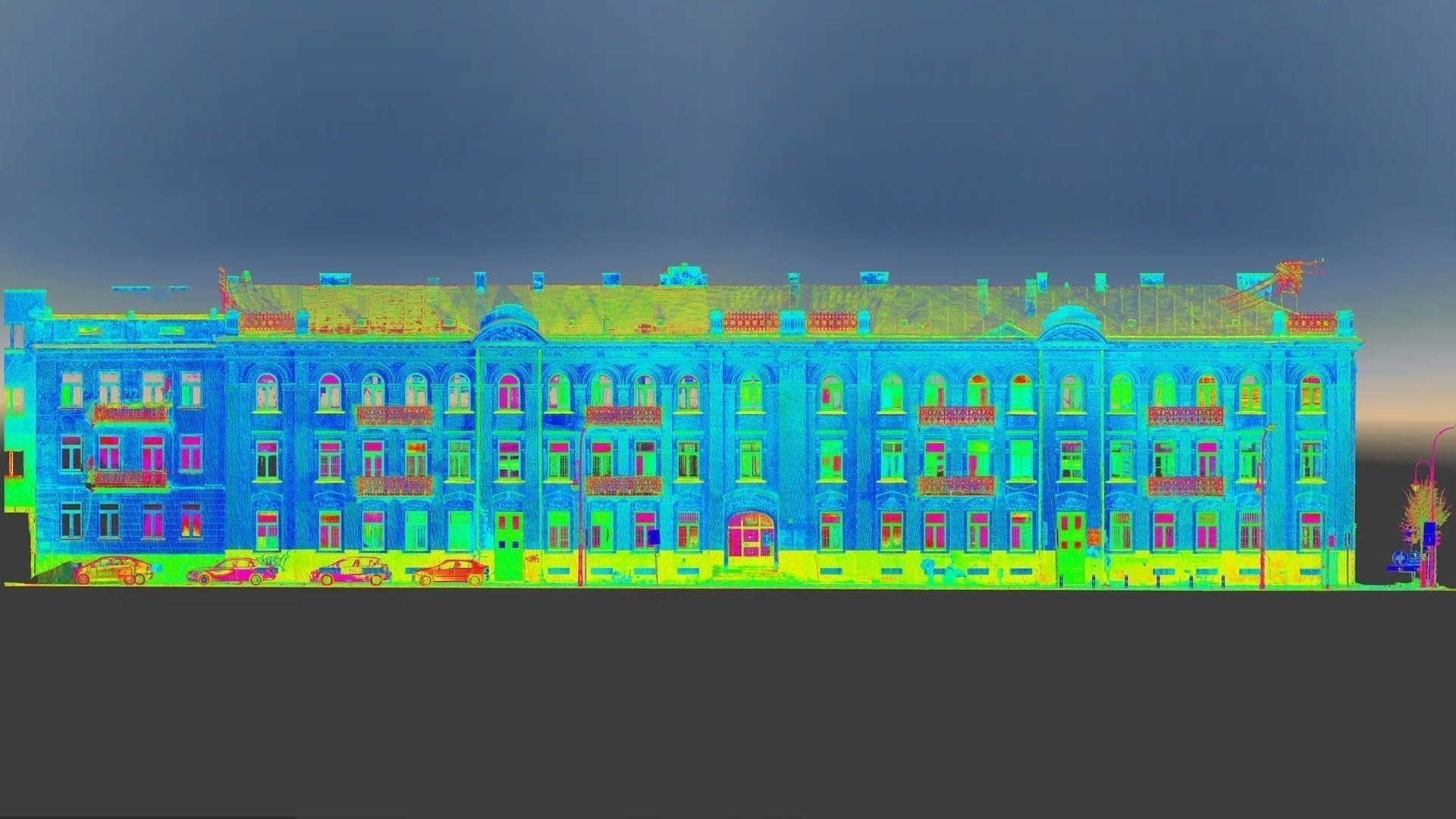 Der Zweck dieses Projekts, das vom Gebäudemanagement in Auftrag gegeben wurde, war die Aufnahme der historischen Fassade dieses denkmalgeschützten Gebäudes zu Dokumentationszwecken. Der Denkmalschutzbeauftragte stellte hohe Anforderungen an die Genauigkeit des Projekts. Aus diesem Grund wurden verschiedene Technologien eingesetzt, um einen umfassenden Datensatz zu sammeln. Eine davon war die Orthofotogrammetrie. Orthofotometrische Bilder wurden mit einer Genauigkeit von 2 mm pro Pixel aufgenommen.