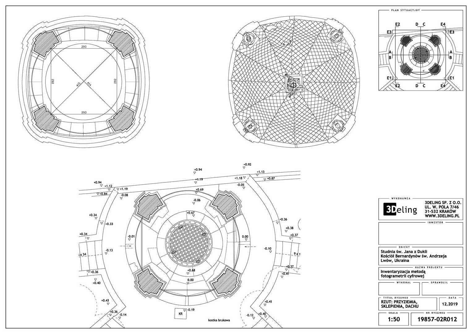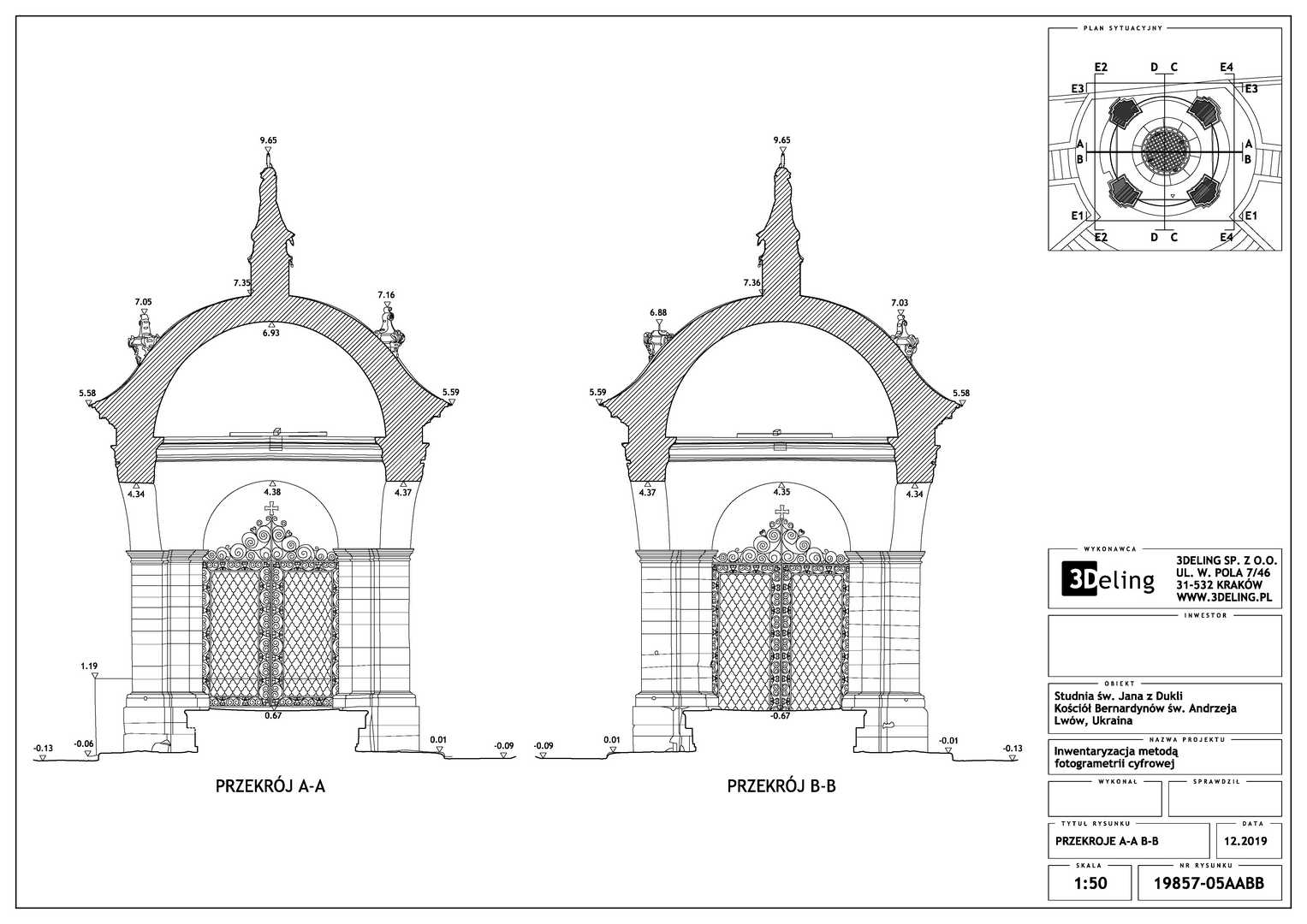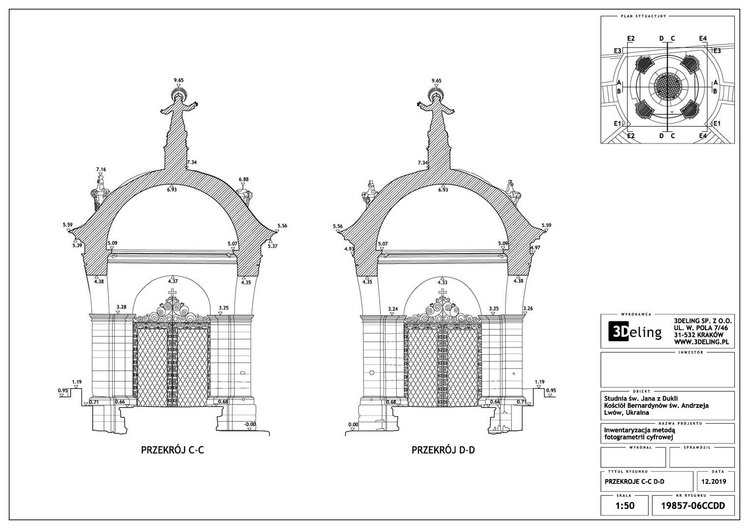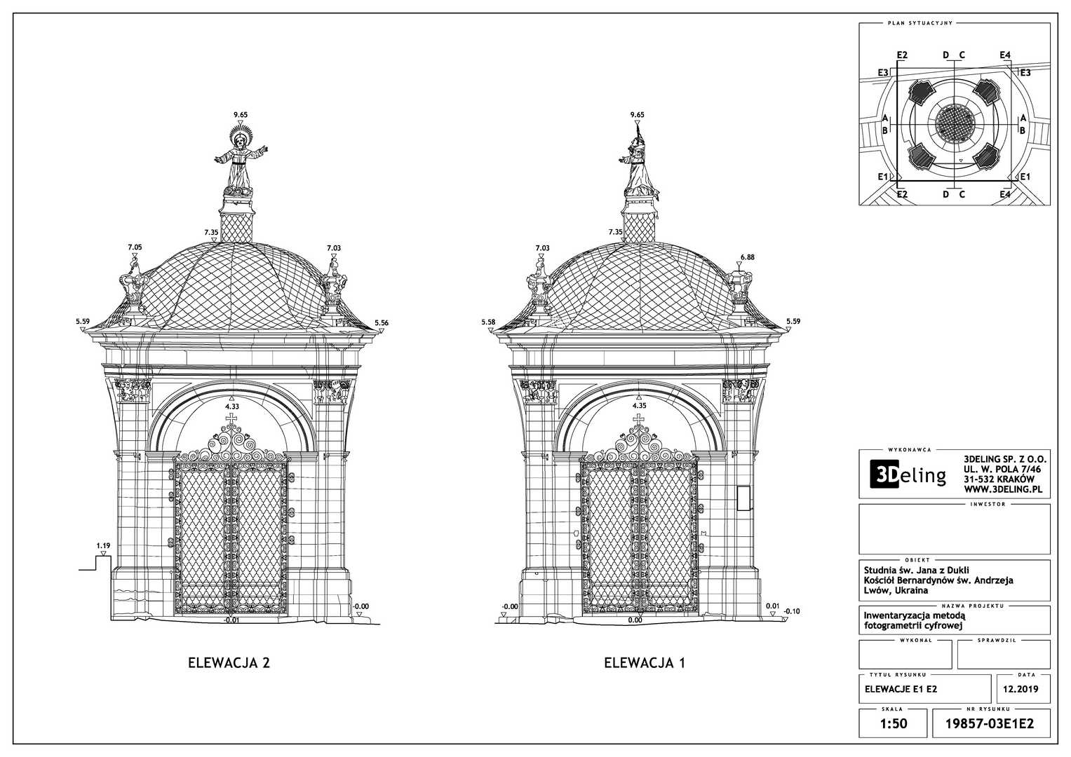 Beauftragt vom Polonika Institut zur Digitalen Vermessung des Brunnens von St. Johannes aus Dukla in Lviv. Das Objekt dieses Projekts befindet sich außerhalb der Bernhardinerkirche in Lviv. Aufgrund seiner Größe und Geometrie haben wir uns entschieden, nur photogrammetrische Werkzeuge zu verwenden – eine besonders hochauflösende Digitalkamera und eine geodätische Totalstation. Das zweite Gerät diente zur Messung von Kontrollpunkten, die zur Festlegung der Geolokalisierung und Skalierung des Objekts erforderlich sind.