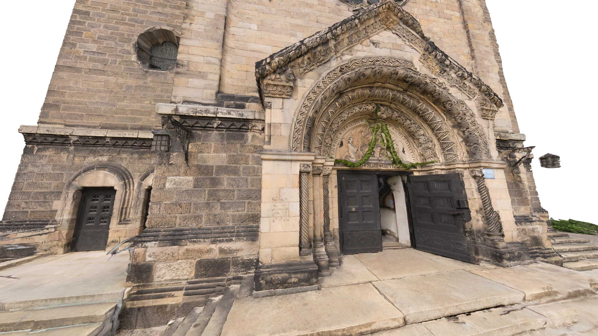 Zusätzlich nahmen wir Fotos mit einer Drohne auf, die wir weiterhin zur Erstellung einer dichten Punktwolke und am Ende eines Maschenmodells verwendeten. Darüber hinaus wurden Orthofotos erstellt sowie verschiedene Arten von Visualisierungen, um dieses historische Gebäude zu bewerben.