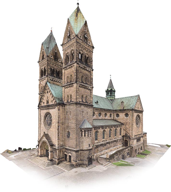 Der Hauptzweck dieses Projekts bestand darin, die Oberfläche der Fassaden, des Dachs und der historischen Polychromie der Kirche zu berechnen.