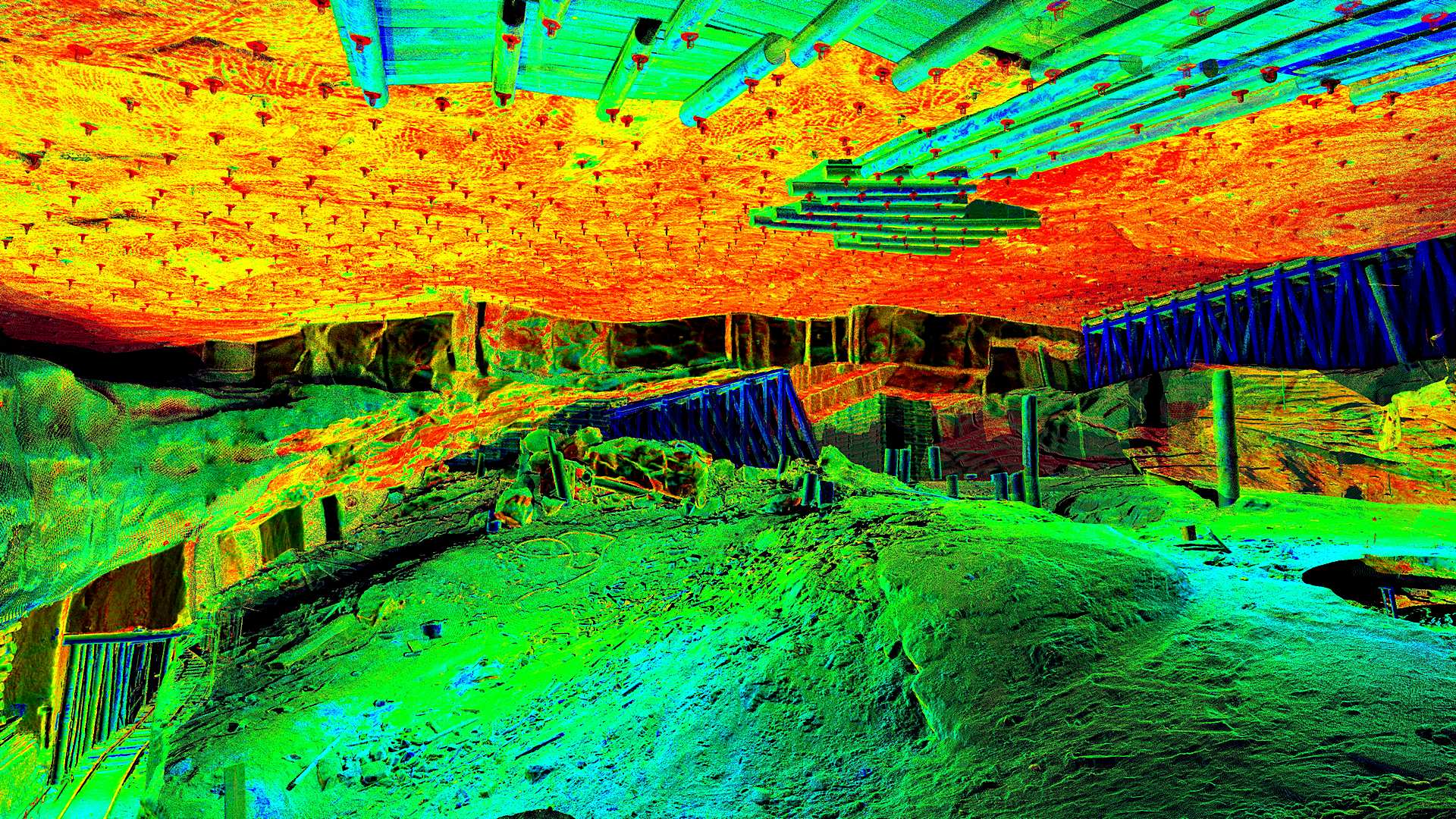Zusätzlich zu den Umfrageinformationen wurde auch ein 3D-Stereofilm für die gesamte Punktwolke zu Marketingzwecken produziert. Der Film ermöglicht es dem Betrachter, schnell die Anordnung der Mine zu visualisieren, was in einer realen Situation schwierig ist.