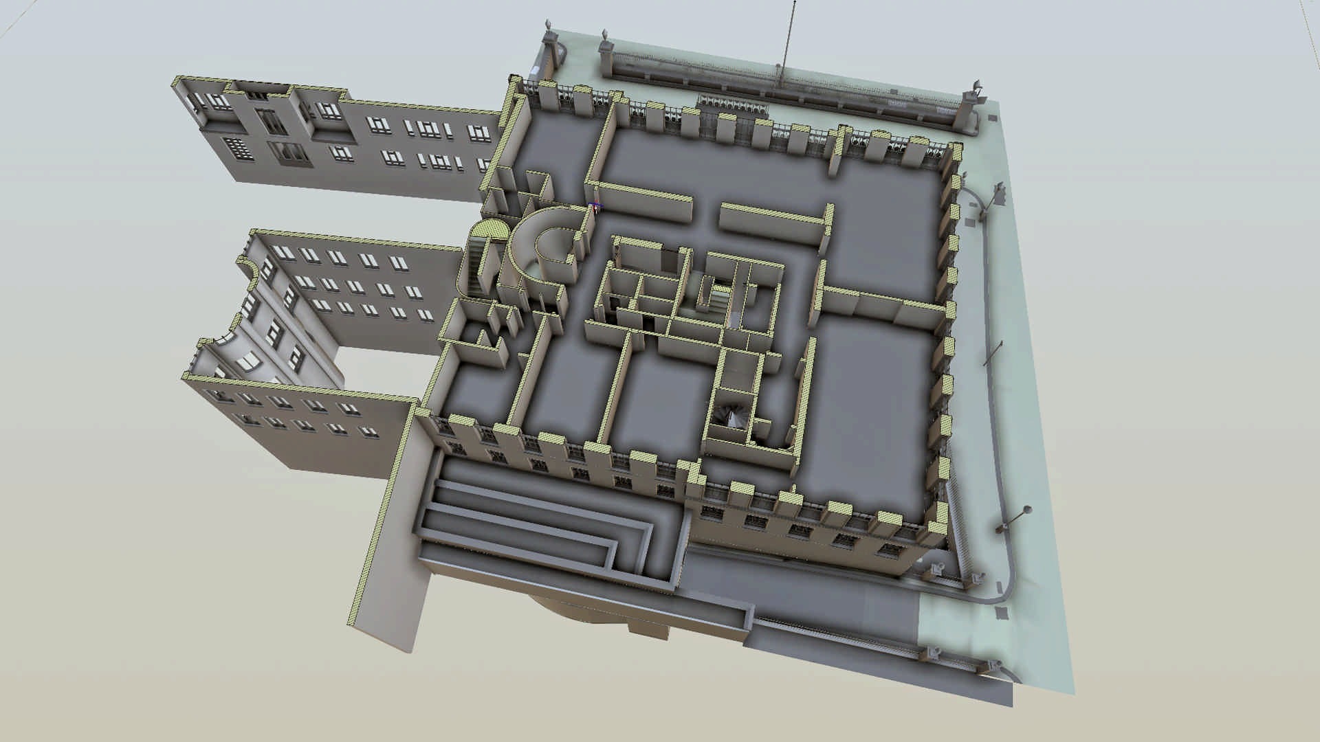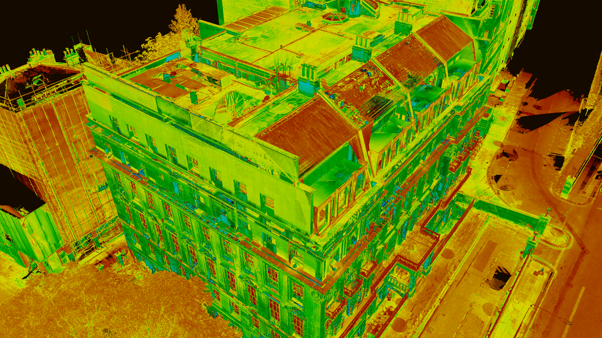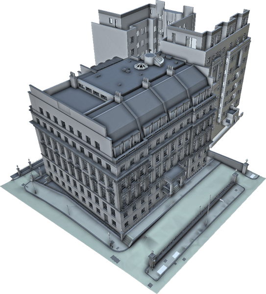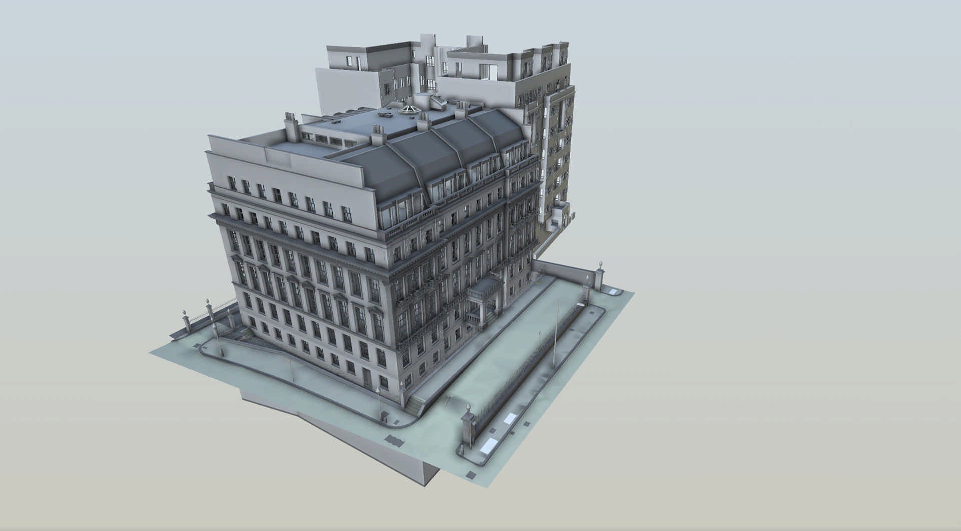 Unsere Beteiligung war, laut der Bestellspezifikation, eine umfassende Aufnahme durchzuführen. Mit 750 Laser-Scan-Aufnahmen wurde das immense, 45-Schlafzimmer umfassende, siebenstöckige Anwesen in kurzer Zeit erfasst. Der kombinierte Datensatz und die 3D-Punktwolke wurden dann verwendet, um ein detailliertes BIM-Revit-Modell des vorhandenen Gebäudes (zusammen mit einer Reihe von 360 fotografischen Aufzeichnungen des gesamten Geländes und der Struktur, die als Leica Truviews bereitgestellt wurden) zu erstellen.