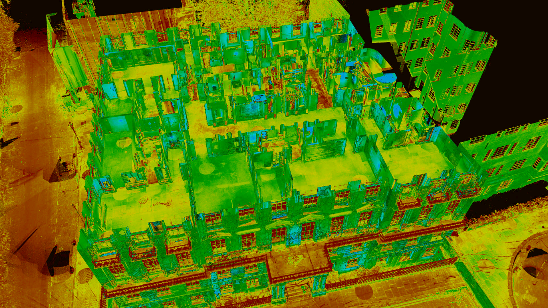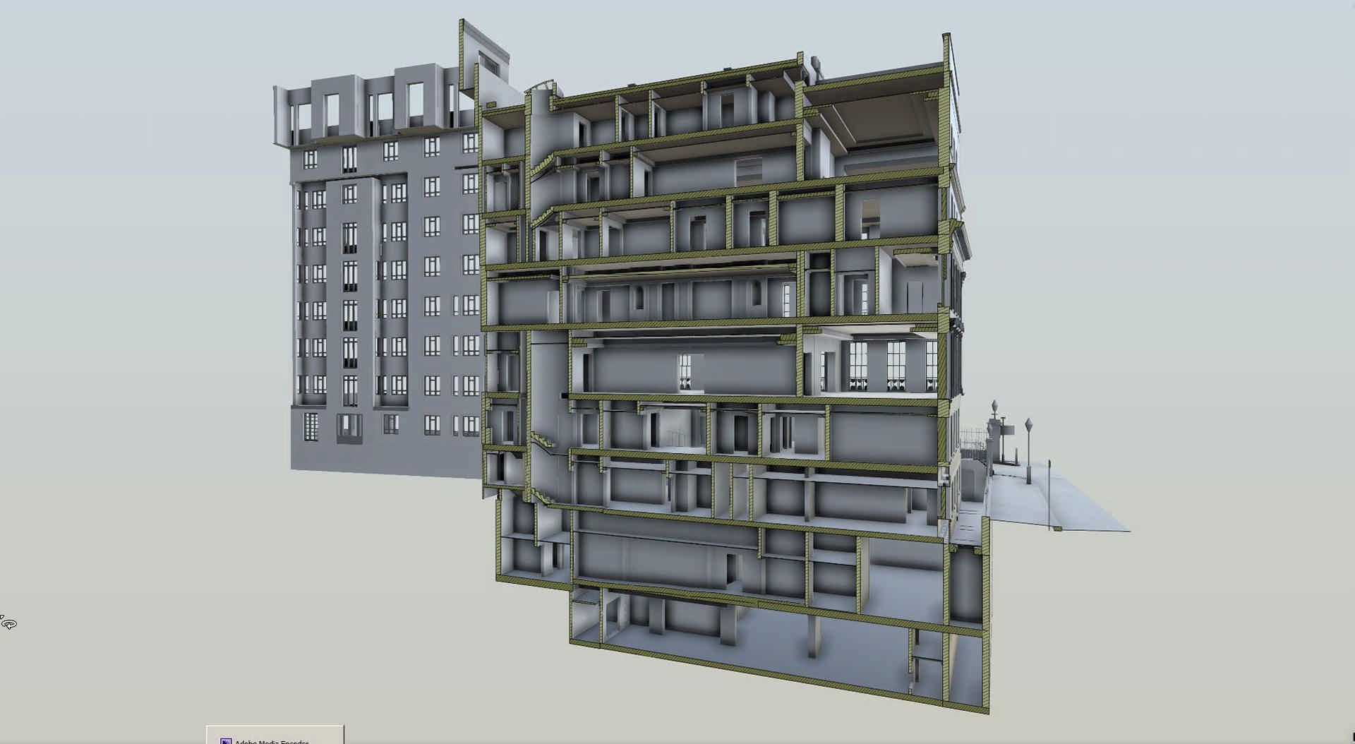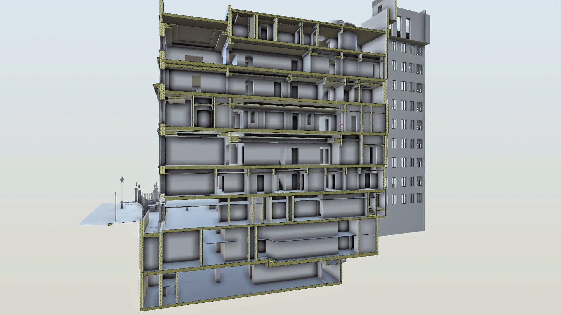 Unsere Beteiligung war, laut der Bestellspezifikation, eine umfassende Aufnahme durchzuführen. Mit 750 Laser-Scan-Aufnahmen wurde das immense, 45-Schlafzimmer umfassende, siebenstöckige Anwesen in kurzer Zeit erfasst. Der kombinierte Datensatz und die 3D-Punktwolke wurden dann verwendet, um ein detailliertes BIM-Revit-Modell des vorhandenen Gebäudes (zusammen mit einer Reihe von 360 fotografischen Aufzeichnungen des gesamten Geländes und der Struktur, die als Leica Truviews bereitgestellt wurden) zu erstellen.
